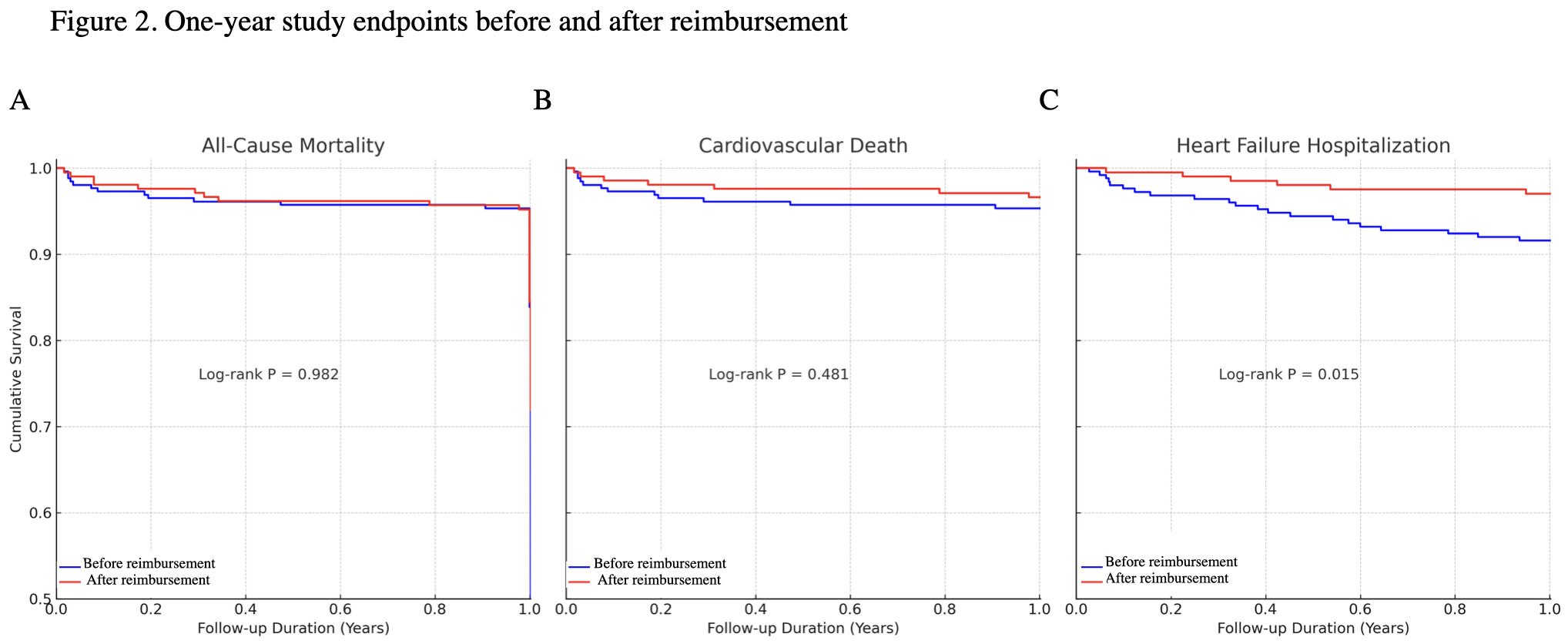 Conclusion: NHI reimbursement in Taiwan expanded TAVI access to higher-risk patients without compromising short- or mid-term mortality, and was associated with improved heart failure readmission, especially among high-risk patients.
