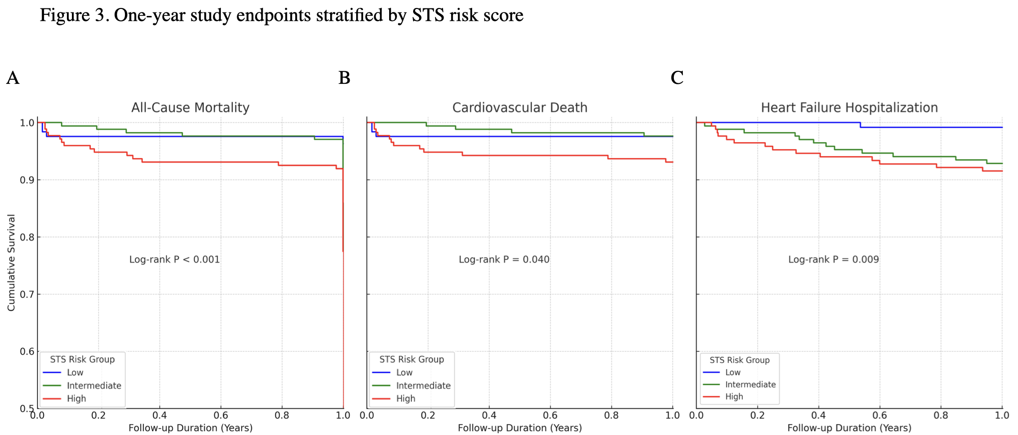 Results: Reimbursement was associated with a shift toward higher-risk patients, reflected by an increase in median STS scores (5.9% to 7.2%, p=0.002) and more patients classified as high-risk (44.0% vs. 31.8%, p=0.019). Post-reimbursement patients had higher frequency of dialysis (17.7% vs. 7.6%, p=0.001) and valve-in-valve procedures (8.4% vs. 2.7%, p=0.007), but shorter hospital stays (7.0 vs. 10.0 days, p<0.001). VARC-3 defined thirty-day outcomes were similar, except for reduced acute kidney injury in post-reimbursement patients (1.0% vs. 6.6%, p=0.021). One-year mortality was unchanged, but HF rehospitalization decreased significantly (2.9% vs. 8.1%, p=0.017). After multivariable adjustment, high STS risk (¡Ã8%) independently predicted worse one-year outcomes.