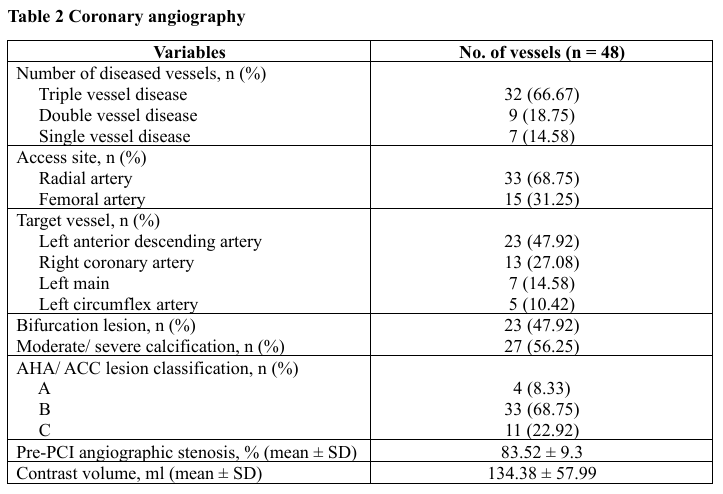 This single-center, single-arm, pre–post interventional study was conducted at Police General Hospital, Bangkok, Thailand. We prospectively enrolled adult patients (¡Ã18 years) who underwent IVUS-guided PCI between September 2024 and March 2025 for chronic coronary syndrome (CCS), non-ST elevation myocardial infarction (NSTEMI) or unstable angina. Exclusion criteria included hemodynamic instability, sustained ventricular arrhythmia, chronic total occlusion, heavily calcified lesions requiring atherectomy, complex bifurcation requiring two-stent technique and prior PCI or CABG involving the target vessel. All procedures followed standard clinical practice. Drug-eluting stents were implanted in all cases. After initial stent deployment and post-dilation, IVUS imaging was performed using a 60 -MHz TrueVision IVUS system (Insight Lifetech, Shenzhen, China) with automated pullback at 1 – 3 mm/s. Operators performed conventional IVUS analysis using manual border tracing. Optimal deployment was defined as: (1) MSA > 5.0 mm©÷ or expansion > 80%; (2) plaque burden < 50% within 5 mm of stent edges; and (3) no edge dissection > 3 mm involving media. Underexpanded stents underwent additional post-dilation followed by repeat IVUS until optimal expansion was achieved.The same IVUS dataset was then reanalyzed using automated longitudinal analysis software, which delineated vessel contours and generated continuous profiles of lumen and stent areas. The system flagged suboptimal regions with low lumen area or high plaque burden. If inadequate expansion was identified, additional post-dilation was performed, followed by repeat automated IVUS assessment.The primary outcome was stent expansion improvement between the automated reassessment and final automated IVUS analysis. Secondary outcomes included the proportion of lesions fulfilling all optimal IVUS criteria and comparisons of balloon size and inflation pressure before and after additional post-dilation.
