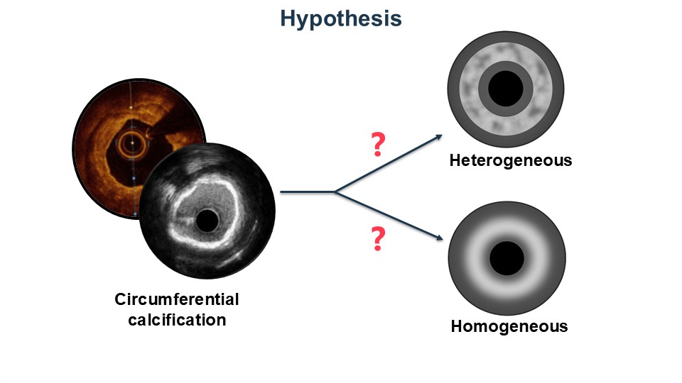 From a registry of 1,075 patients who underwent CCTA prior to CT- and IVUS-guided PCI between April 2022 and July 2025, coronary segments with 360¡Æ circumferential calcification were identified. CCC was defined as a continuous arc of calcium spanning the entire vessel circumference in at least one axial cross-section. When multiple cross-sections were available, the frame with the highest HU was selected. CV was calculated as the ratio of the standard deviation to the mean HU. Shannon entropy was used to assess the complexity and uniformity of the HU distribution.