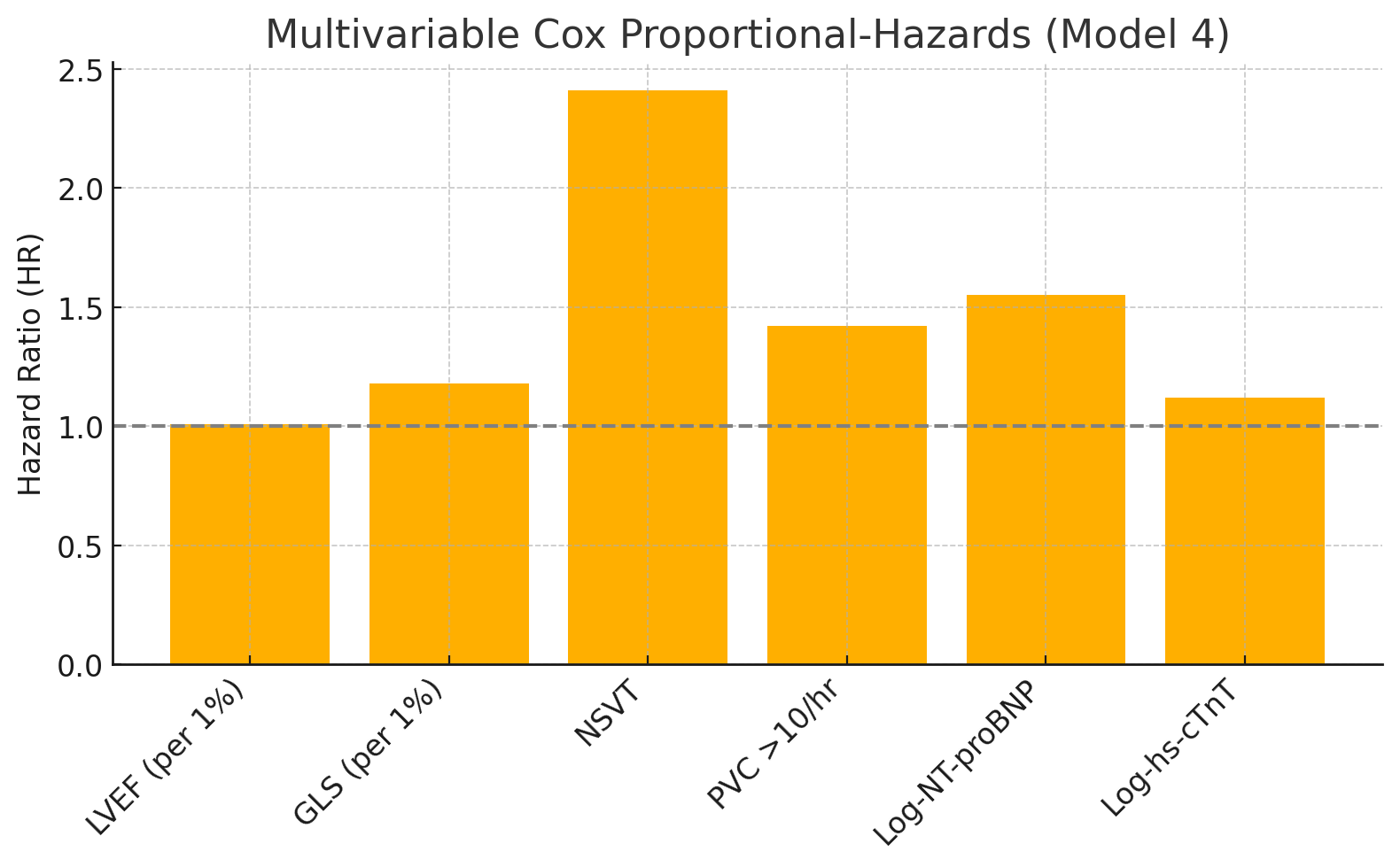 In T2DM patients post-MI with relatively preserved LVEF, a multi-modality strategy integrating GLS, NSVT, and NT-pro BNP provides significant, independent, and incremental prognostic information over traditional risk factors. This approach identifies a high-risk cohort in Myanmar who may warrant more aggressive secondary prevention.