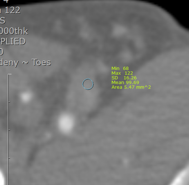 Thrombus HU values were measured using standardized regions of interest (ROI)within the occluded vessel segments. Additional clinical data included patientdemographics, type of thrombus, in-stent vs native thrombosis, and lesionlength. The type of thrombus was classified as acute if it lasted less than 2weeks, subacute if it lasted between 2 weeks and 2 months, and chronic if itlasted more than 2 months based on the patient's history.