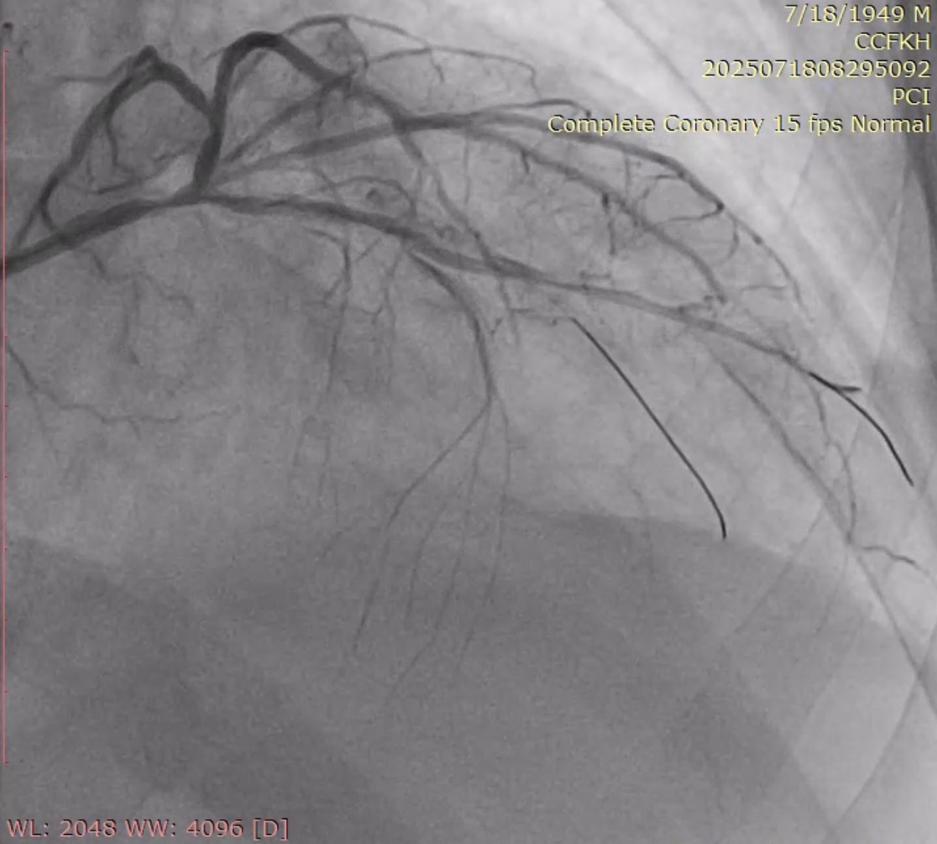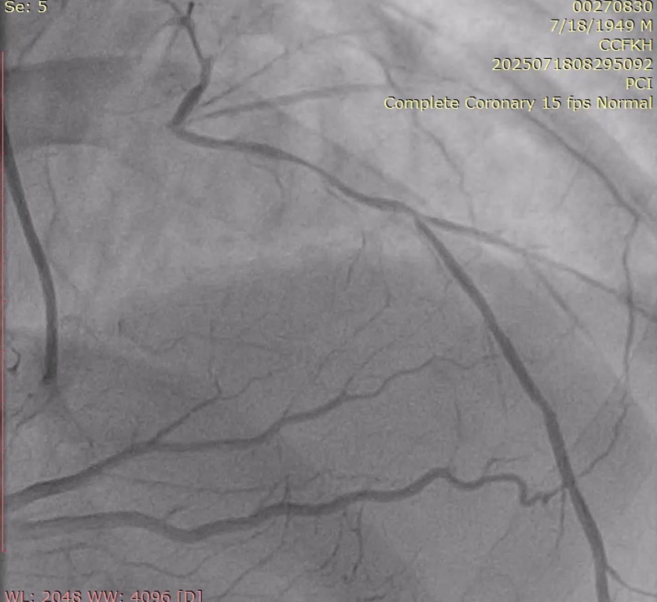 The patient was a 76-year-old male with past medical history of hypertension. He has had a three months history of exertional chest pain. He was admitted to emergency department for worsening chest pain. His hemodynamic status was stable upon arrival.