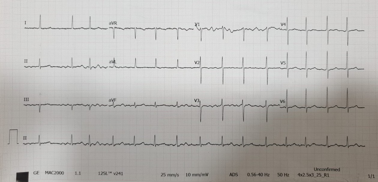 He had microcytic hypochromic anemia with hemoglobin (Hb) of 8.8 g/dL. His renal and liver function tests were normal. Troponin I was not elevated. Electrocardiogram showed rate-controlled atrial fibrillation. 2D-echocardiogram showed LV systolic dysfunction with EF of 37% with hypokinesia at apical and anteroseptal segments. He was planned for tumor resection and was referred for cardiac work-up after a multi-disciplinary discussion between Surgical, Cardiology and Anesthesiology team.