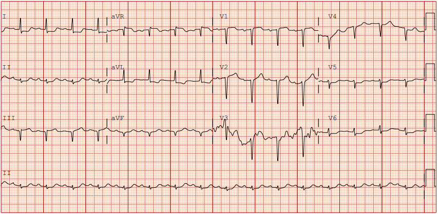 A 66 year old man with end stage renal failure was consulted due to intradialytic chest pain. Patient also has long standing history of diabetes, hypertension, dyslipidemia and bilateral below knee amputation. Cardiomegaly was noted during physical examination. ECG showed ST depression on anterolateral lead.
