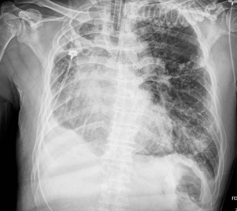 A 48-year-old male with a history of treated pulmonary tuberculosis resulting in a destroyed right lung, end-stage renal disease on regular hemodialysis was admitted with non-ST-elevation ACS complicated by congestive heart failure with respiratory failure on endotracheal tube. After decongestion, he could extubation and stable without oxygen support. Angiography showed left main disease and double chronic total occlusion. The Heart Team decided to decline CABG and appointed him for stage PCI.