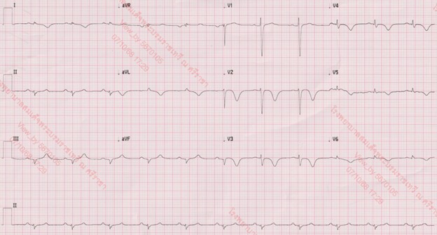 The initial electrocardiogram showed a sinus rhythm rate of 66 beat per minute with new T wave inversion in V2 to V6 and I, aVL. The Chest Xray showed increase CT ratio with pulmonary congestion with visualized endotracheal tube and no significant change of destroyed right lung. The transthoracic echocardiography demonstrated a left ventricular ejection fraction of 33% with anterior and lateral wall hypokinesia from basal to apex and no significant valvular abnormalities.
