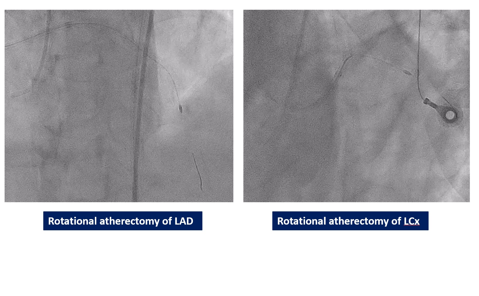 The primary treatment for complex coronary artery disease was traditionally coronary artery bypass graft (CABG) surgery. However, complex percutaneous coronary intervention (PCI) is now a feasible option that can achieve good results, especially in patients who are unsuitable for surgery. This case successfully demonstrates a highly complex PCI used to treat a double chronic total occlusion (CTO). The procedure, which involved rotational atherectomy of both the LAD and LCx arteries in a high-risk patient, achieved excellent results without any complications, thus confirming the utility of advanced PCI strategies.