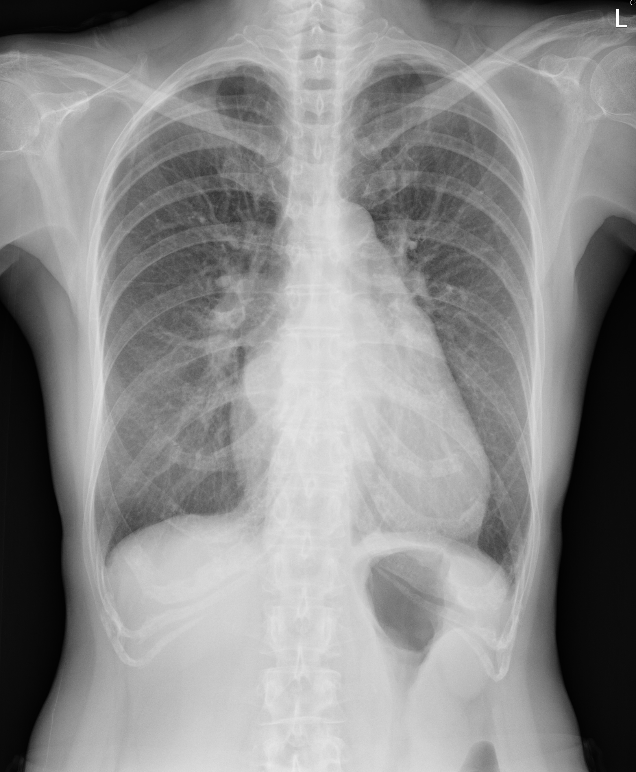 This is a 58-year-old woman with hypertension. She presented with dyspnea on exertion for several years, which progressed since one year ago, accompanied with paroxysmal nocturnal dyspnea. Physical exam showed clear breath sounds bilaterally, regular heart beats, and a grade III low-pitched diastolic murmur over the apex.