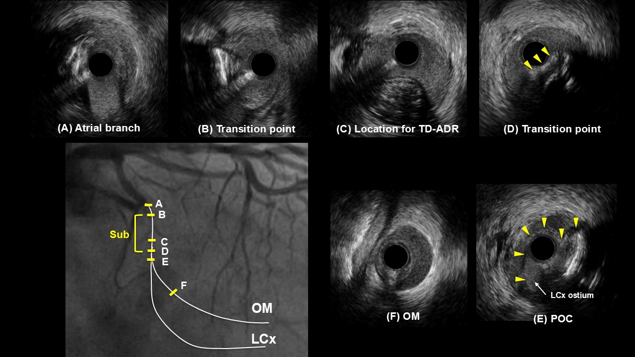After true lumen access was achieved, provisional LCX to OM stenting restored TIMI 3 flow. Final IVUS showed good stent expansion and apposition, without edge dissection or residual hematoma.