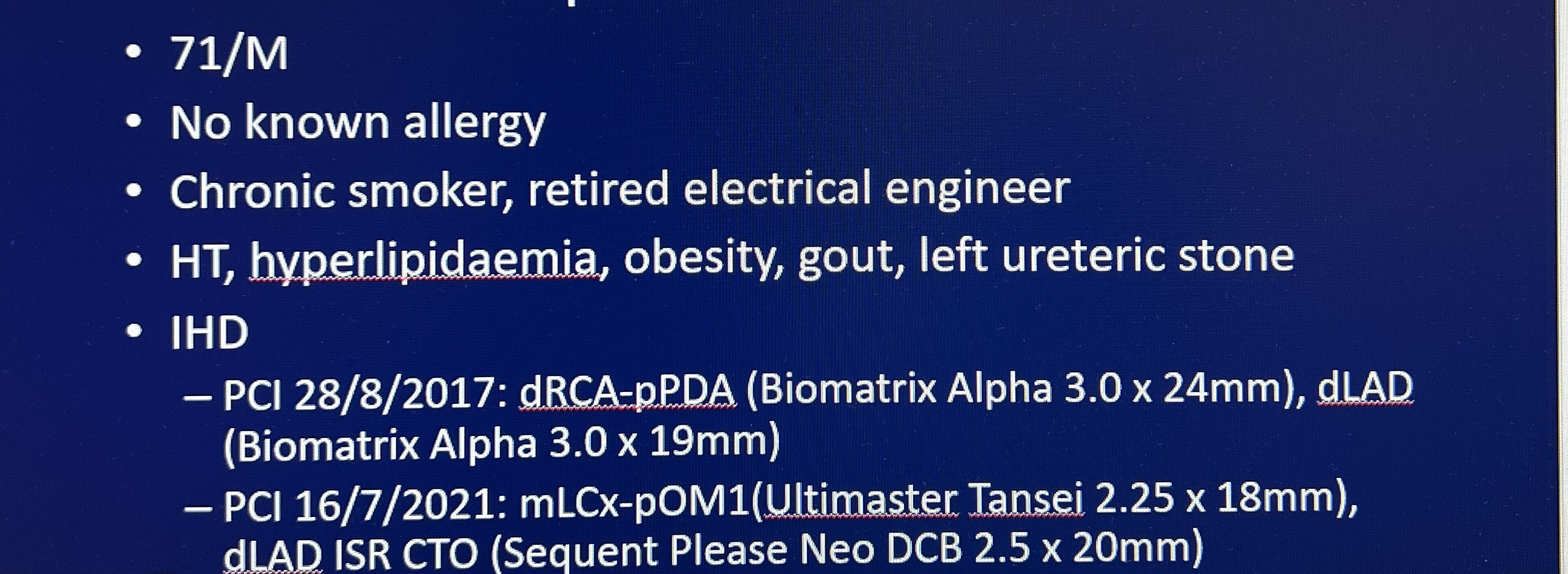 PCI 16/7/2021: mLCx-pOM1(Ultimaster Tansei 2.25 x 18mm), dLAD ISR CTO (Sequent Please Neo DCB 2.5 x 20mm)
