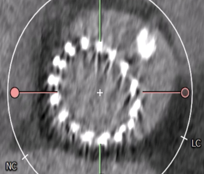 CT confirmed absence of commissural misalignment of failed CoreValve, and commissural alignment of the Evolut PRO was achieved by orienting the delivery system with the flush port at 3 o¡¯clock. The inflow portion of the the Evolut PRO was implanted at the same level as the failed CoreValve. Aortography post-implantation confirmed no RCA obstruction.