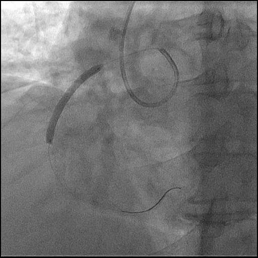 Diagnostic angiography has been performed and occluded Left Anterior descending artery was visualized but, the right coronary artery couldn't be find from the right coronary ostium. 6F EBU 3.5 catheter trough the right radial approach has been inserted and we could visualize right coronary artery arising from the left coronary ostia. Direct stenting was performed with 3.5/38mm DES at 17 atm. After this procedure we continued to LAD, passed the occlusion with BMW wire after which predilatation with 2.5/20 mmx 14 atm has been performed and after that 3.0/28mm DES at 15atm was implanted with good end result