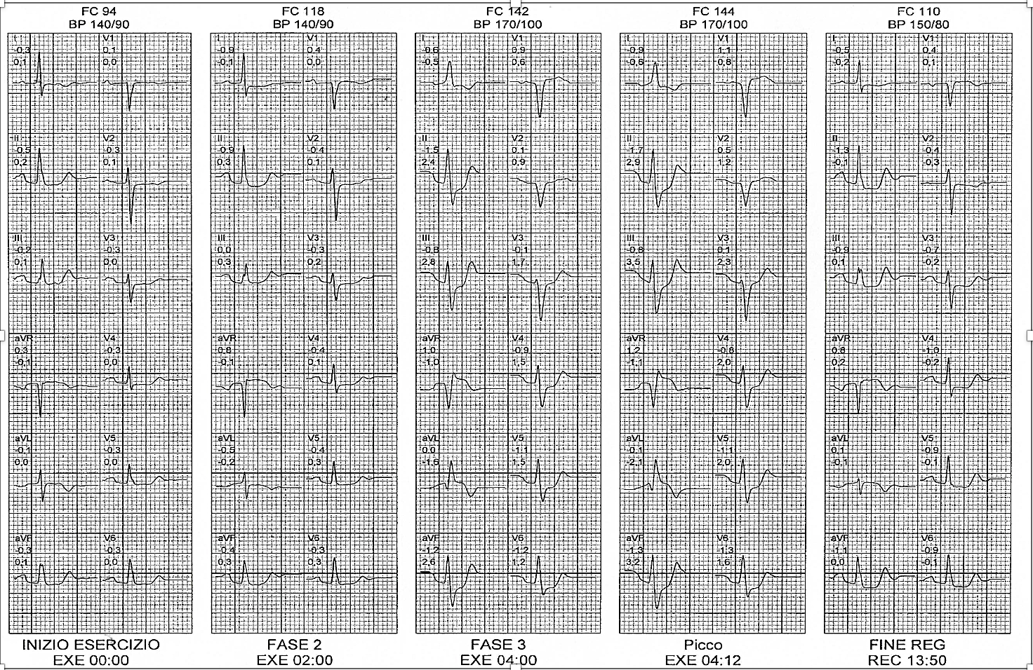 A 65-year-old woman with diabetes, hypertension, and dyslipidemia presented with effort angina. A treadmill test was positive for ischemia, showing significant ST depression and aVR elevation. She experienced chest pain that subsided during recovery, prompting same-day admission and coronary angiography.