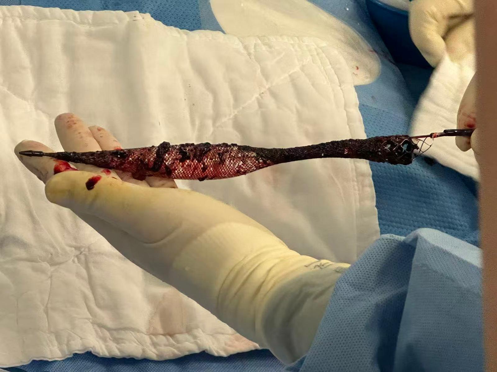 use of Flowtriever to aspirate clots from IVC fitler and showing clot above filter.mp4