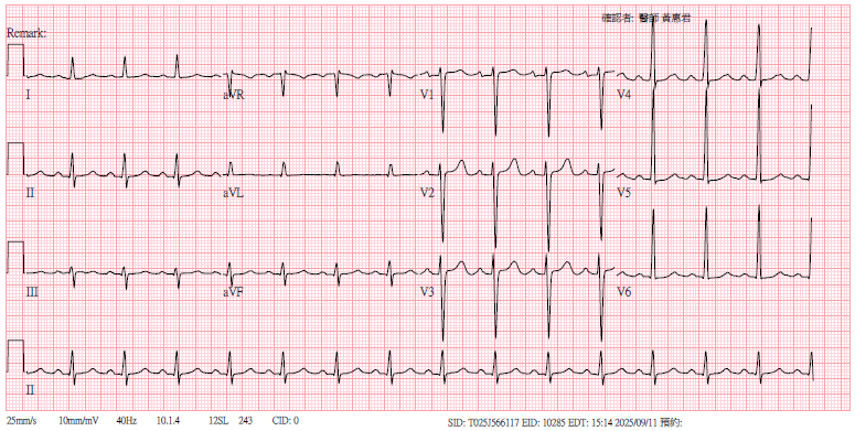 Electrocardiography showed normal sinus rhythm with left ventricular hypertrophy. Chest X-ray revealed borderline cardiomegaly and prominent pulmonary vasculature. Transthoracic echocardiography demonstrated a dilated left ventricle with a severely reduced ejection fraction of 32.7%. Laboratory tests showed elevated NT-proBNP (351.2 pg/mL), normal blood counts, preserved renal and hepatic function, and HbA1c of 6.1%.