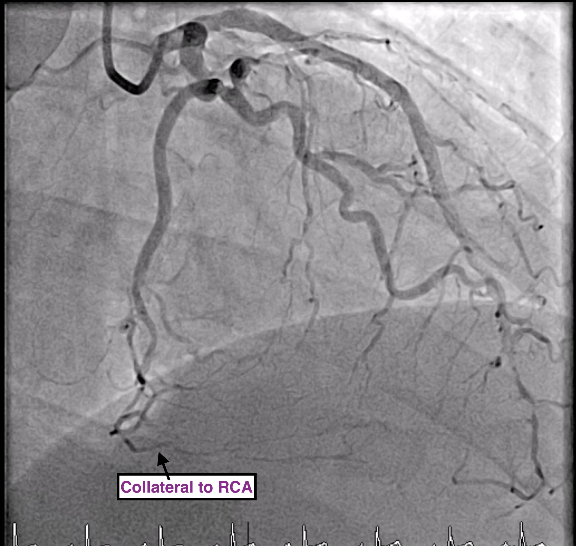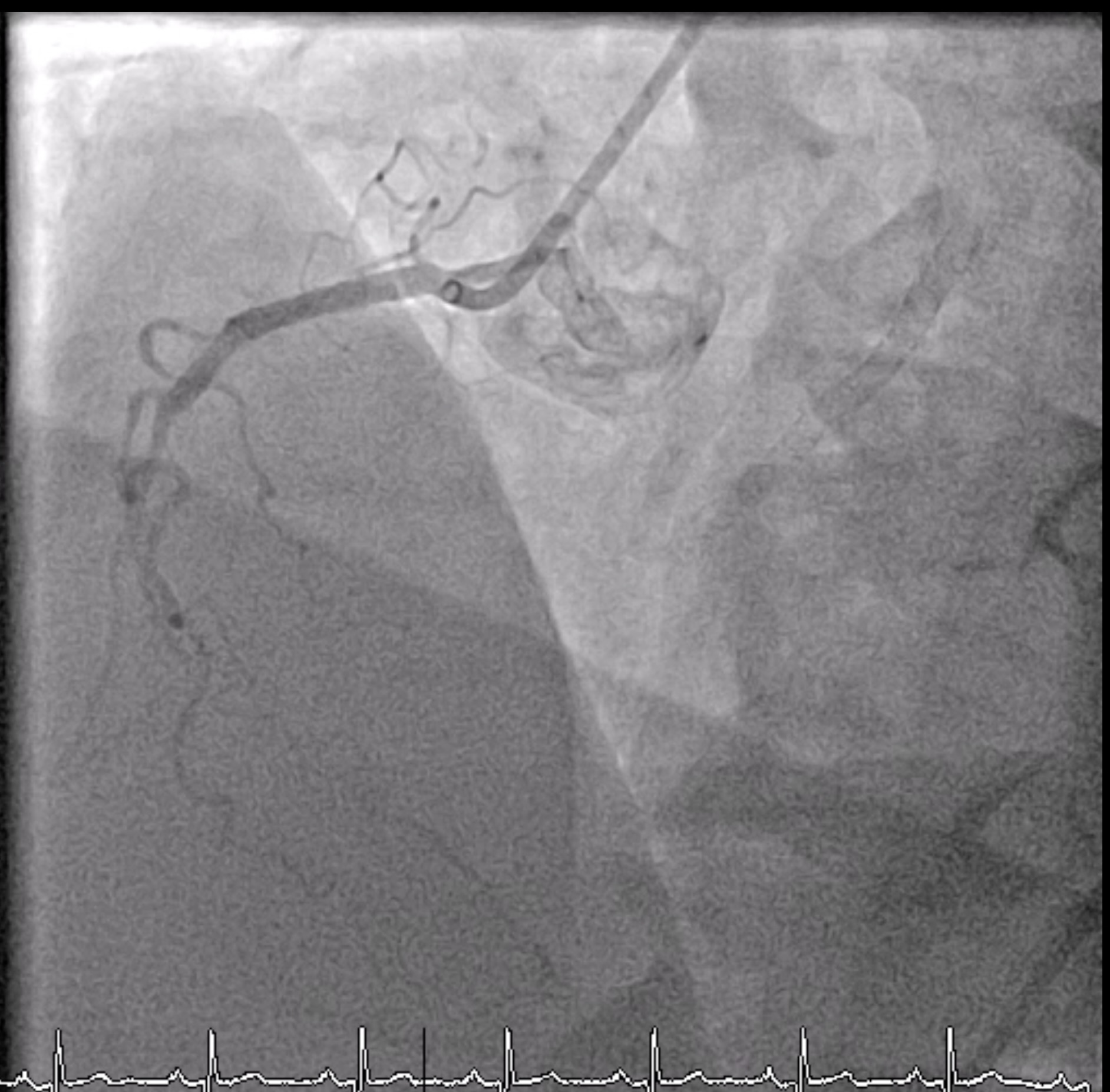 LM: NormalLAD: Patent proximal to mid-LAD stentLCx: No significant stenosisRCA: Patent stent at proximal RCA, CTO mid to distal RCA, receive collateral to PL and PDA from LAD