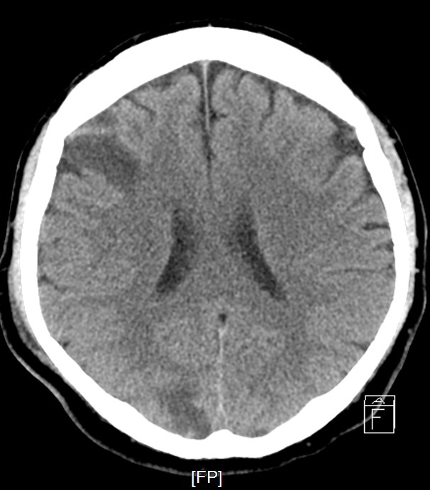 Staged PCI (Mar 6): One DES was placed in the LCX and one DCB in the LM–LCX segment. ECMO and IABP were successfully removed on March 8. Continuous renal replacement therapy was started for acute kidney injury. Brain CT showed watershed infarcts and a small subarachnoid hemorrhage, followed by gradual neurological recovery.