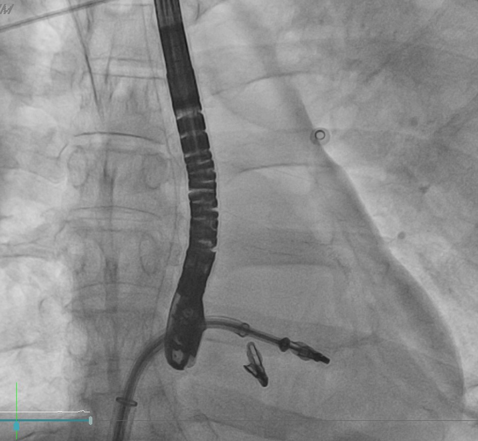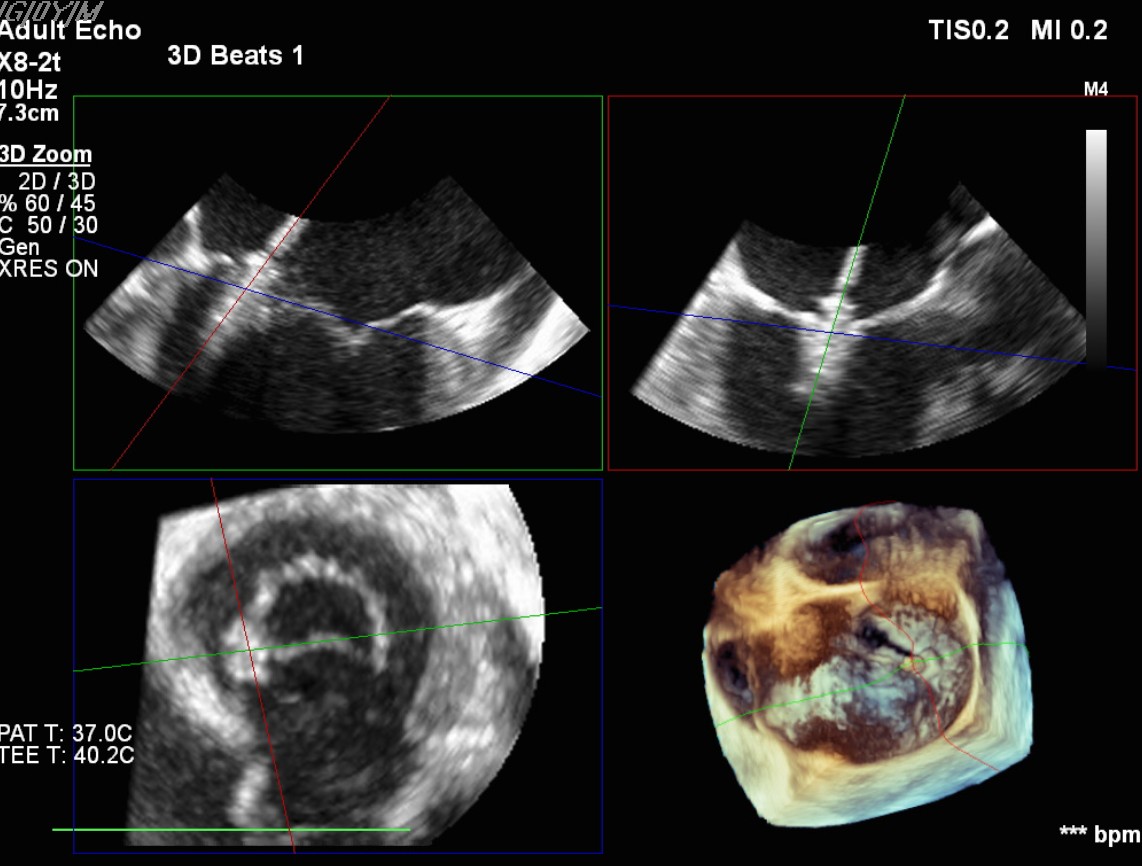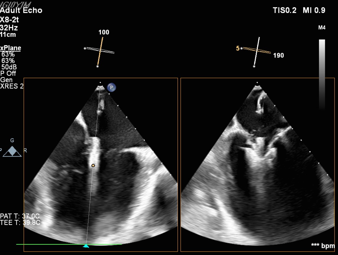Transcatheter Edge-to-Edge Repair (Mar 27): TEE demonstrated severe mitral regurgitation with low cardiac output (~2 L/min). Two G4 XTW MitraClips were implanted successfully, improving hemodynamics.