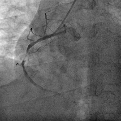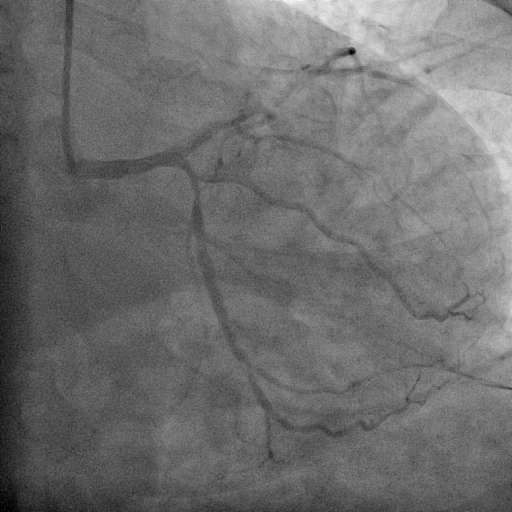 Coronary angiography was performed via right radial access with terumo radial TIG 5Fr catheter . Coronary artery angiogram revealed right dominance coronary artery system with RCA mid 100% with retrograde from LAD and LCx proximal 70%, distal 80% and LAD proximal 99% .
