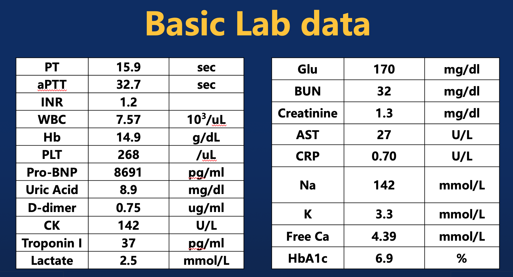 Relevant Test Results Prior to Catheterization