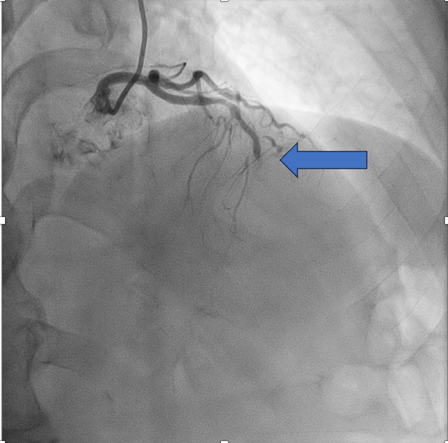 CORONARY ANGIOGRAM REVEALED CHRONIC TOTAL OCCLUSION AT THE MID LEFT ANTERIOR DESCENDING ARTERY (MLAD) WITH COLLATERALS FROM RIGHT CORONARY ARTERY. OTHER CORONARIES ARE NORMAL.