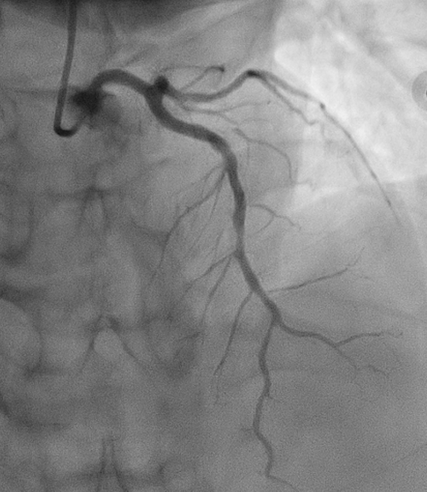WE DECIDED TO INTERVENE THE CTO MLAD IN VIEW PERSISTENT ANGINA. BILATERAL RADIAL ARTERY PUNCTURE, WITH ANTEGRADE APPROACH. WE ENGAGED RIGHT CORONARY ARTERY WITH JR4 6 FR AND WIRED DOWN WITH RUNTHROUGH FLOPPY. ENGAGED THE LEFT CORONARY ARTERY WITH EBU 3.5 7FR. INITIALLY TRIED TO WIRE THE LAD WITH FINECROSS MICROCATHER (MC) USING SION BLACK WIRE BUT FAILED. SUBSEQUENTLY CHANGED TO GAIA 1ST AND MANAGED TO CROSS SUCCESSFULLY. IVUS SHOWED 360 DEGREE CALCIFICATION WITH 270 DEGREE CALCIFICATION MORE THAN 5 MM, IVUS CALCIUM SCORE 2. CALCIUM DEBULKING WAS DONE USING ROTABLATION WITH 1.5 BURR RUN 3 TIMES AT 220 KRPM FOR 10 SECS AND POLISHING RUN TWICE AT 140 KRPM. POST ROTA SHOWED PRESENCE OF FRACTURED CALCIUM WITH REVEBERATION SIGN. LESIONS WAS PREPARED FURTHER USING WOLVERINE 3.0 X 10MM AND 3.5 X 10MM. POST CUTTING BALLOON SHOT SHOWED NO DISSECTION, TIMI 3 FLOW AND RESIDUAL STENOSIS 30%. DECIDED FOR DCB WITH PANTERA LUX 3.0 X 20MM AND AGENT 3.50 X 30MM. FINAL SHOT SHOWED TIMI3 FLOW, NO DISSECTION SEEN. PATIENT REMAIN ASYMPTOMATIC AT 6 MONTHS AND REPEATED COROS SHOWED MODERATE STENOSIS AT MLAD WITH NEGATIVE FFR (0.92).