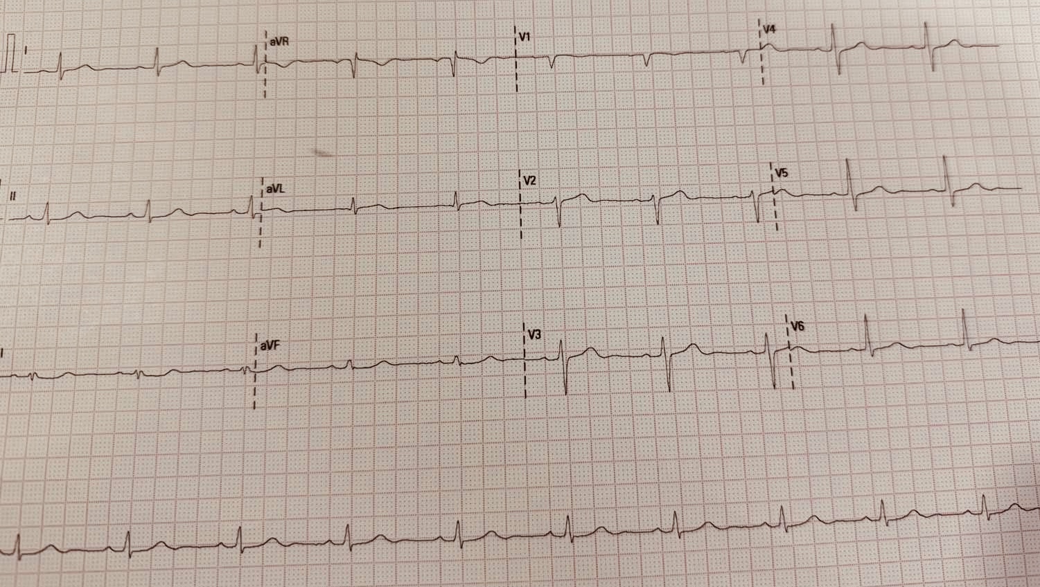 12-lead ECG demonstrated normal sinus rhythm without acute ischemic changes. Transthoracic echocardiography showed regional wall motion abnormality localized to the anteroseptal segment with preserved global systolic function (LVEF ≈55%).