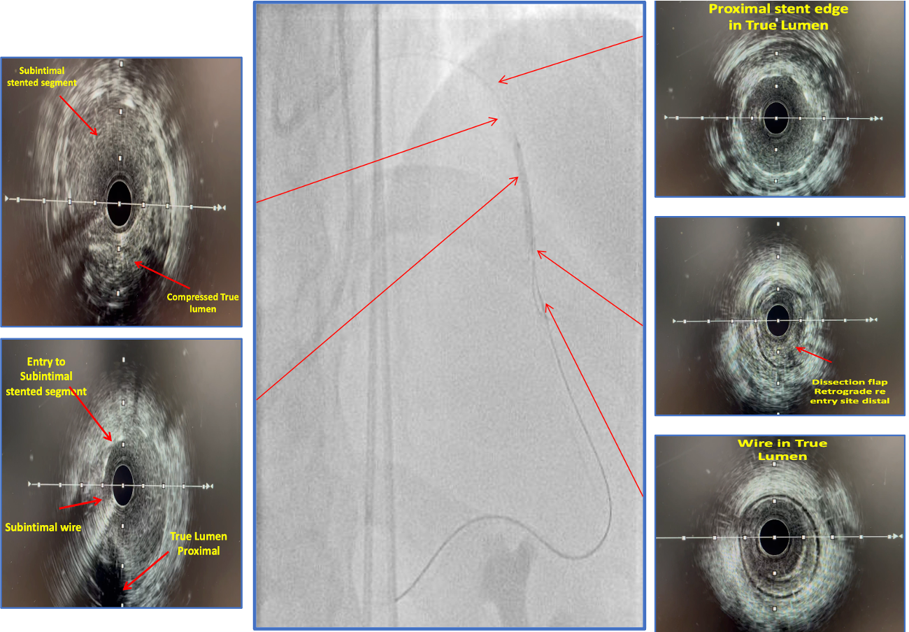 In this case, inadvertent subintimal stenting rendered further antegrade strategies both ineffective and unsafe. Antegrade wire escalation and parallel wiring were limited by fixed wire bias within the stented false lumen, preventing true lumen re-entry. Antegrade fenestration and re-entry were likewise futile, as the stent immobilized the dissection flap, eliminating the tissue mobility required for fenestration. In the absence of a Stingray balloon, Reverse CART proved effective by creating a controlled communication space between the subintimal stented segment and the distal true lumen, allowing the retrograde wire to safely re-enter and achieve successful revascularization.