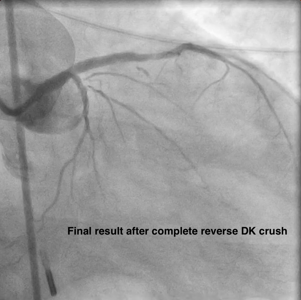 ¡ß In high-risk left main bifurcation intervention during STEMI, a provisional stenting strategy may fail when the side branch is significantly compromised. ¡ß Urgent bailout techniques, though rapid, carry a risk of acute thrombosis, particularly in thrombus-rich lesions. ¡ß Conversion to a dedicated bifurcation technique (reverse Double Kissing Crush) offers better scaffolding and predictable side-branch access when provisional and TAP strategies fail. ¡ß Adequate and intensive antithrombotic therapy is essential in thrombotic left main bifurcation lesions before performing definitive stenting.