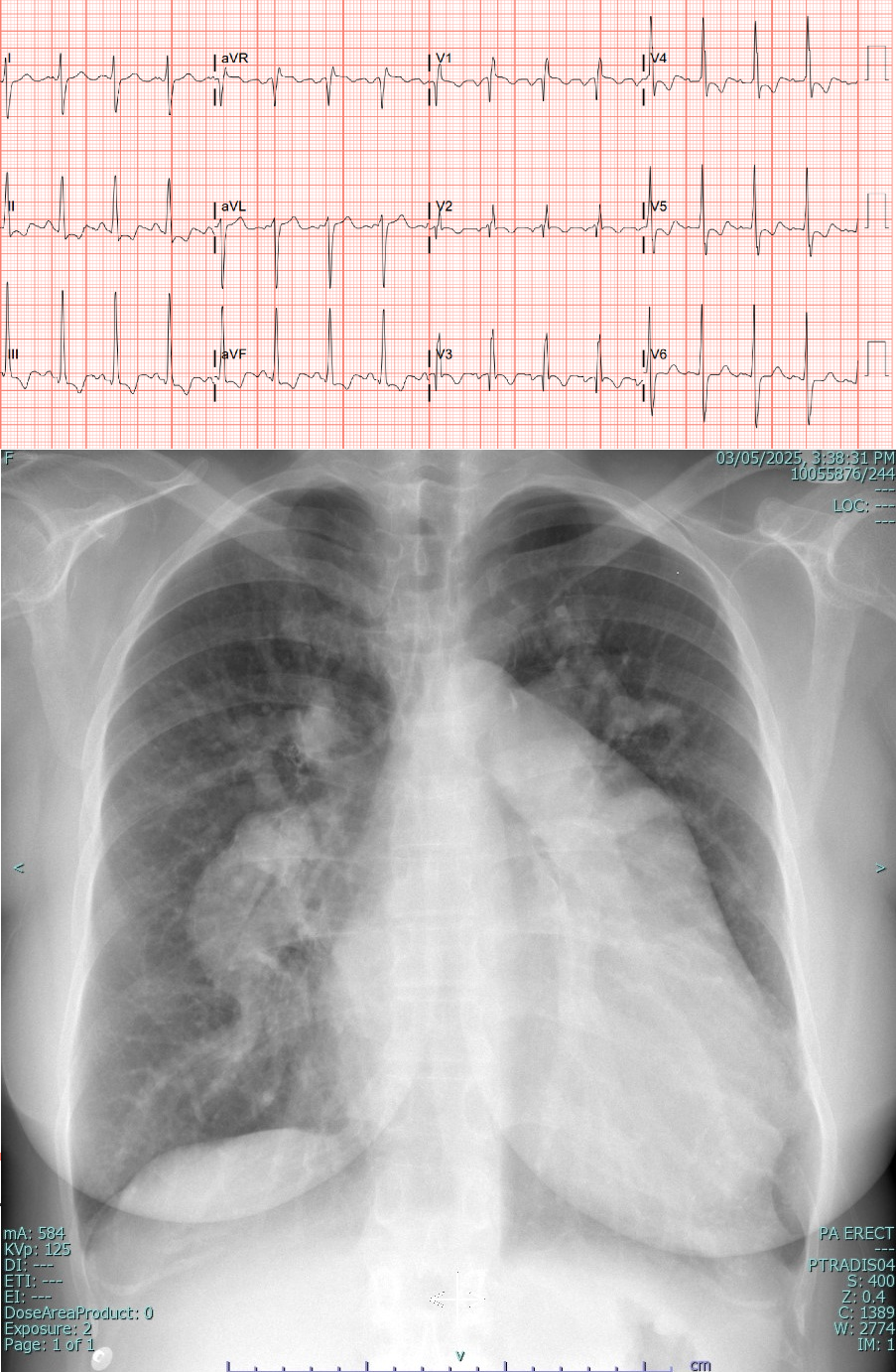 - Aorta // pulmonary artery : 127/58/85 // 86/18/48