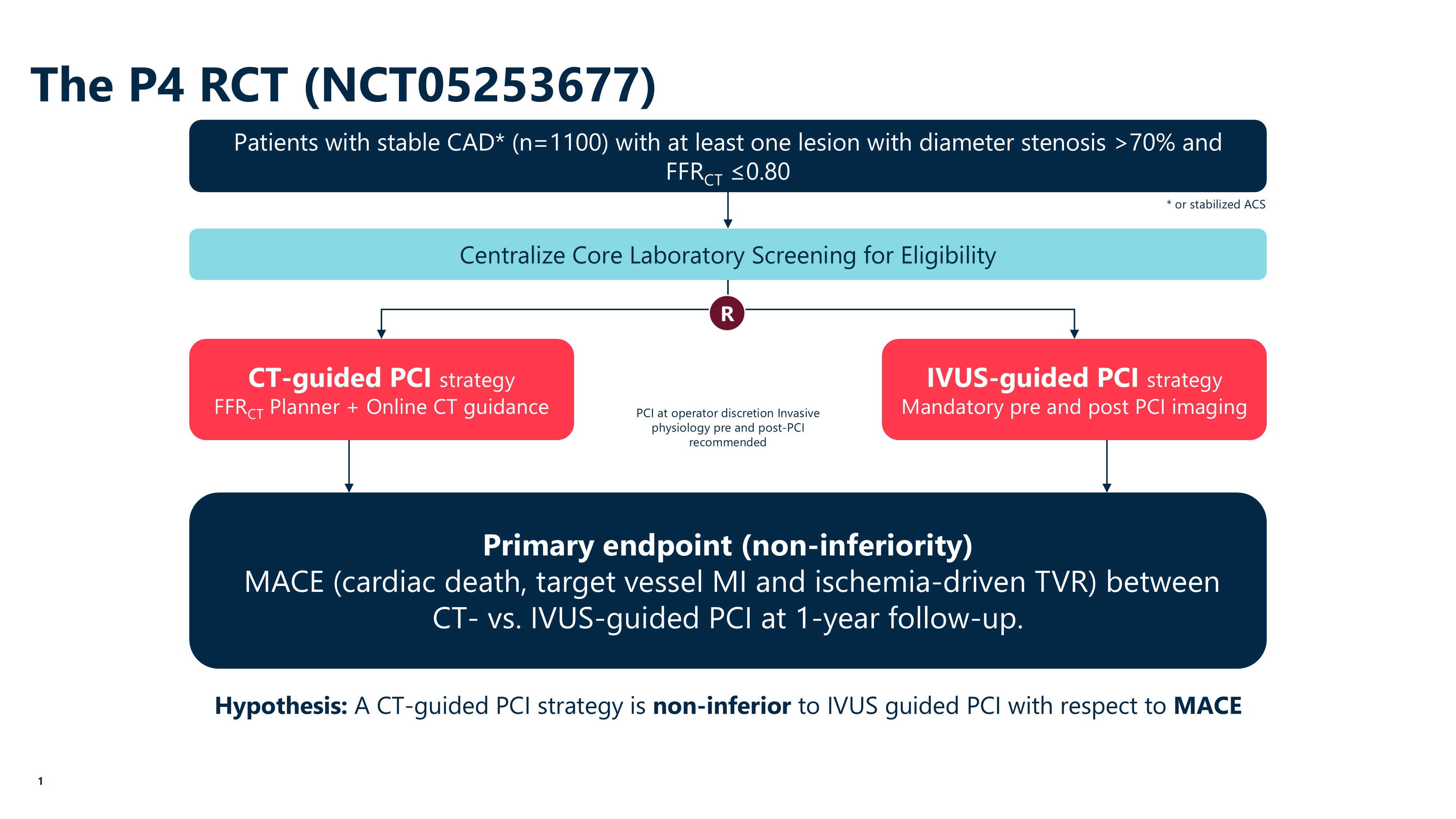 CT-guided PCI enabled precise pre-procedural planning, including lesion assessment, stent sizing, and branch evaluation. The results showed excellent agreement between predicted and measured FFR, demonstrating both the feasibility and accuracy of CT-based planning. This first Asian case within the P4 study highlights the potential of CT-guided PCI as a safe, non-invasive, and standardized alternative to intravascular imaging.
