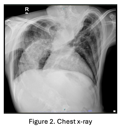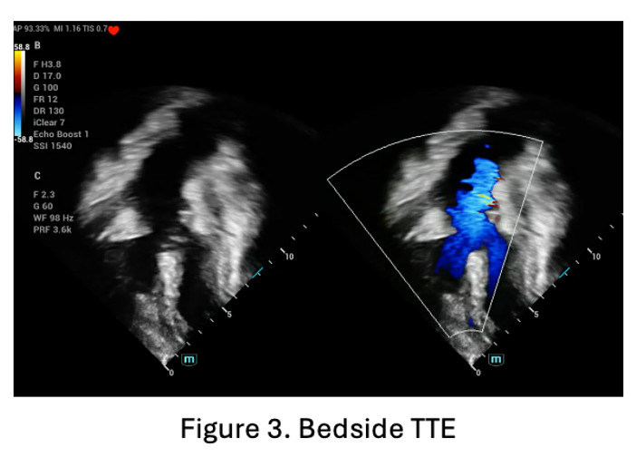 The patient came with lethargic, normal blood pressure and heart rate, increased work of breathing and decreased oxygen saturation into 62% on room air. Laboratory test showed increased hemoglobin and hematocrit into 21.7 mg/dL and 71.3% respectively. Bedside transthoracic echocardiography showed subaortic ventricular septal defect diameter 15-16 mm, right to left shunt, severe narrowing infundibulum, right ventricular outflow tract obstruction, with critical pulmonary stenosis.