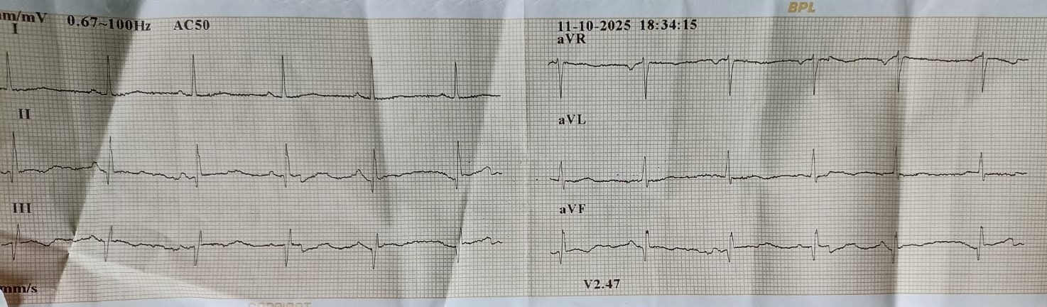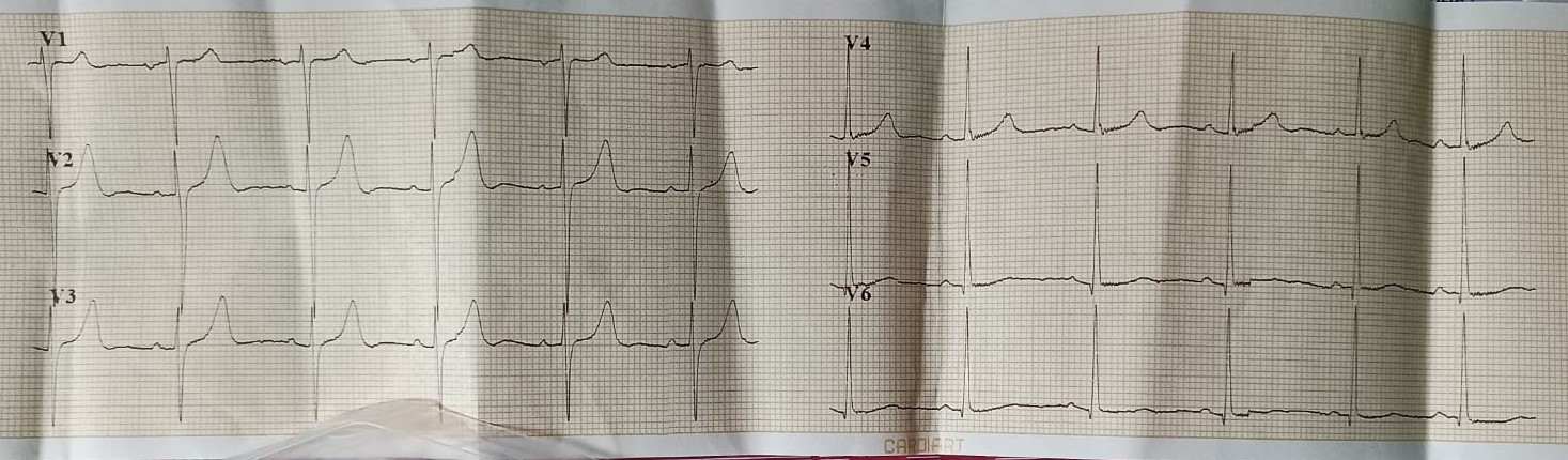 65 years old male, Hypertensive, Non-Diabetic, Smoker with dyslipidemia presented with exertional chest pain for last 6 months (CCS II). Associated with shortness of breath. No history of palpitations, pre-syncope, syncope. He underwent coronary angiography elsewhere and a failed attempt at PTCA.