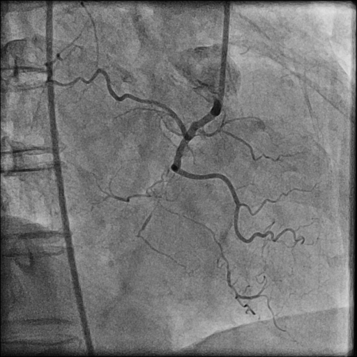 Coronary Angiogram done elsewhere via right femoral artery with JR and AL 1.0LMCA NormalLAD Type III Vessel. Normal. LCx: Non dominant, NormalRCA: Chronic Total Occlusion from midpart. Distal filling by retrograde from Left system.J-CTO score 3