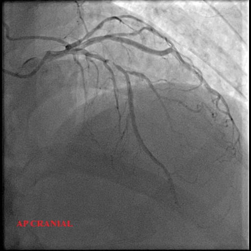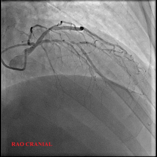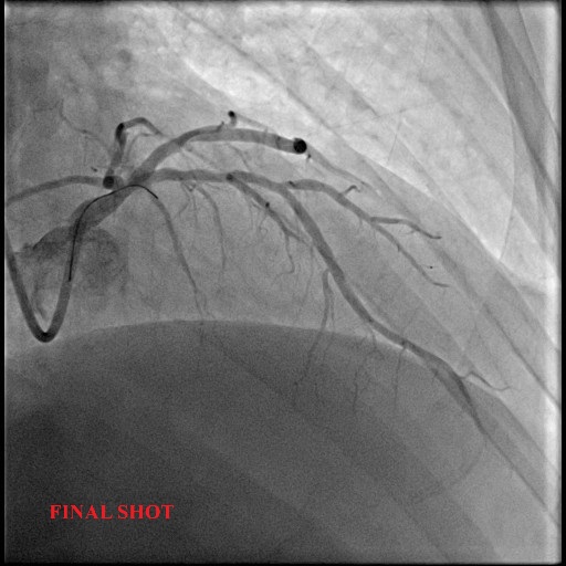 A 58-year-old man with underlying hypertension presented with chest discomfort during exertion and a positive stress test. Echocardiogram shows ejection fraction of 54% and no regional wall motion abnormalities. He underwent a coronary angiogram which showed severe stenosis of the proximal LAD and moderate disease of Left main stem. We proceeded with PCI of the proximal LAD using a drug-coated balloon (DCB). The final angiography showed TIMI 3 flow.