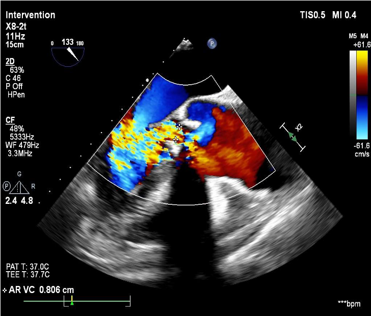 2D echo suggestive of severe aortic regurgitation. CT analysis done and we decided to opt for 24mm TAVR valve