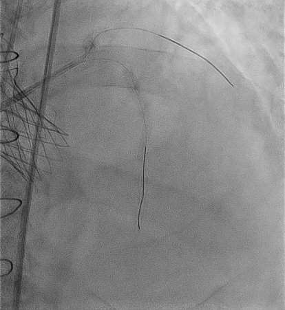 SEV 24 mm was chosen based on CT measurement and bifemoral access was obtained. Carotid filter was placed for cerebral protection.During resheathing of the valve there was sudden circulatory collapse. CPR started and left coronary catheterisation revealed occlusion of left main. Flow was established in LAD with immediate wiring and ballooning. Finally TAVR valve was deployed after LAD flow was established.LCX flow was then resolved and LM bifurcation PCI was done using crush technique Patient was finally discharged in hemodynamically stable condition.