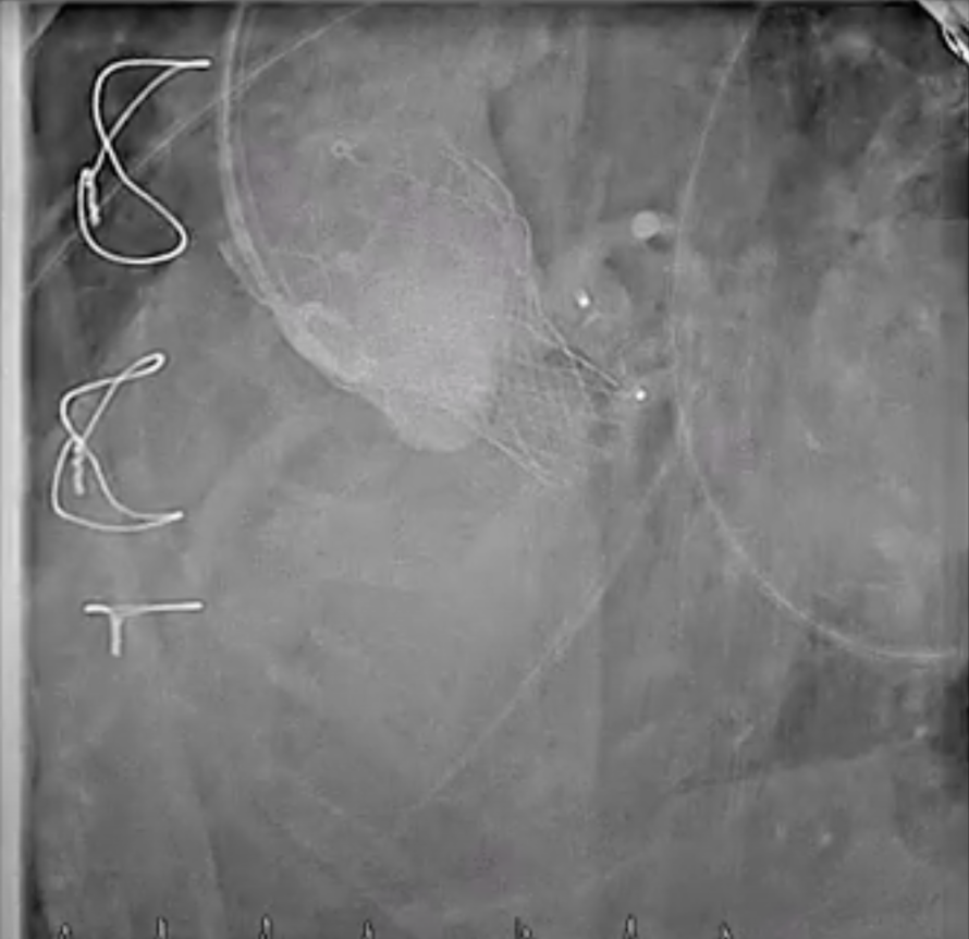 Traditionally, surgical repair has been the treatment of choice for clinically significant PVL. However, repeat surgery in elderly patients with multiple prior valve interventions carries substantial morbidity and mortality risks. In recent years, transcatheter PVL closure has emerged as a less invasive and effective alternative. The Amplatzer Vascular Plug is among the most commonly used devices for this purpose due to its flexibility, controlled deployment, and ability to conform to irregular defects.In this case, the patient¡¯s PVL was successfully closed using an AVP 10/7 mm after multiple catheter exchanges and balloon sizing. Post-procedural imaging confirmed trivial residual PVL.