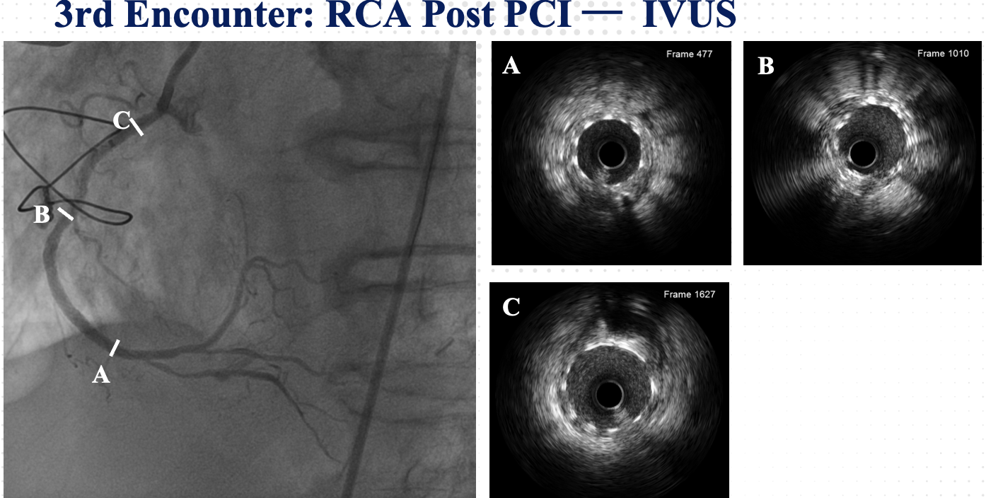 A 76-year-old man presented with worsening chest pain. He had a history of exertional angina and underwent CABG one year earlier for AMI. Comorbidities included hypertension, PAD, and previous cerebral infarction. Physical examination was unremarkable. Achieving optimal PCI and favorable clinical outcomes required three separate encounters—reminding us that success in the cath lab is not only about the lesion¡¯s complexity, but the precision and execution of our strategy.