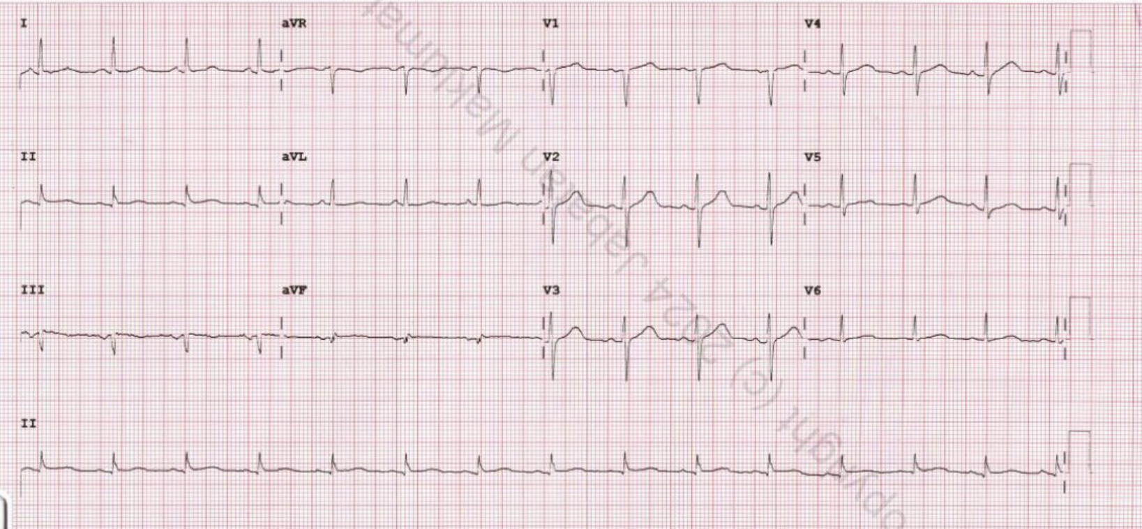 Serial ECG demonstrated Q waves in leads II, III, and V1 without dynamic ST-T changes. High-sensitivity troponin I was elevated at 132 ng/L on admission, rising markedly to 9,345 ng/L after 12 hours. Echocardiography revealed reduced LVEF of 40% with hypokinesia of mid anterior, mid anteroseptal, apical anterior, apical septal, and apical inferior segments, suggestive of LAD territory involvement. Glycemic control was suboptimal, due to poor adherence to medication.