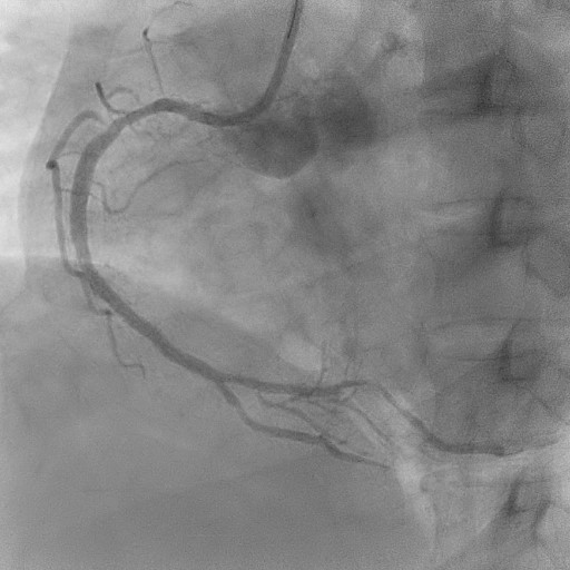 A 43-year-old lady with history of hypertension and dyslipidemia presented in August 2025 with an inferior ST-elevation myocardial infarction for which she underwent successful revascularization of the mid-segment of the right coronary artery with deployment of a drug-eluting stent. Angiographic assessment also revealed a dual LAD anatomy with residual severe stenosis. She was electively admitted in October 2025 for a staged percutaneous coronary intervention to the LAD lesions.