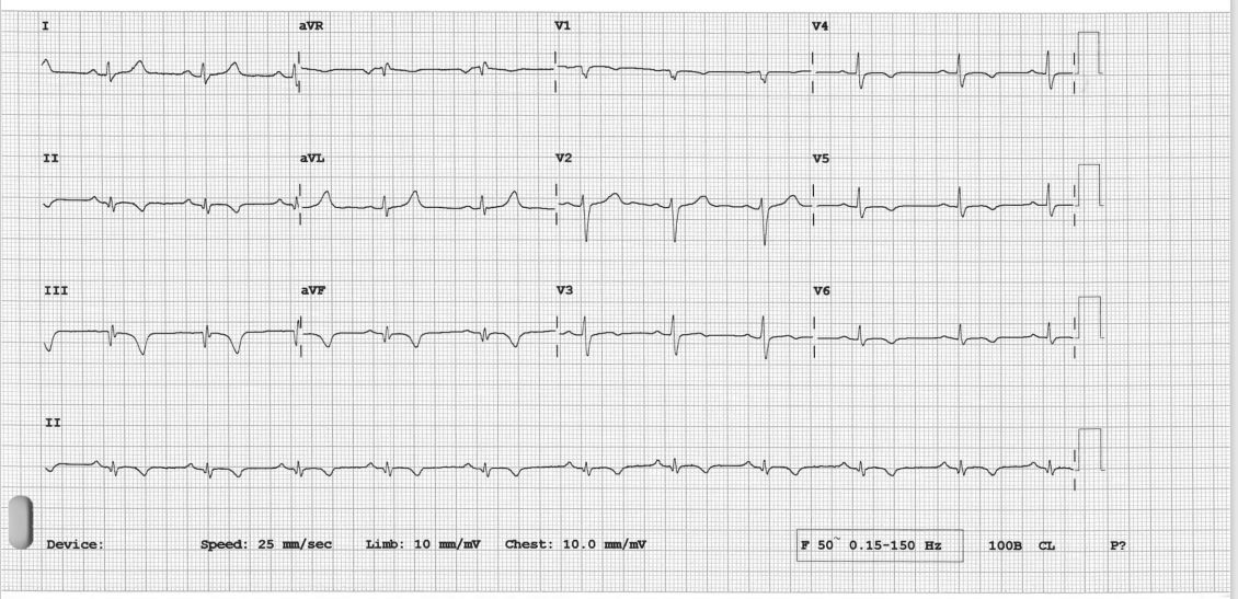 The electrocardiogram (ECG) revealed resolution of ST-segment elevation, with T-wave inversion noted over the inferior and anterolateral leads. The echocardiogram showed reduced left ventricular (LV) function with an ejection fraction (LVEF) of 38%, accompanied by regional wall hypokinesia over the LAD and RCA territories. The cardiac chambers were of normal size, the valves appeared normal, and there was no pericardial effusion.