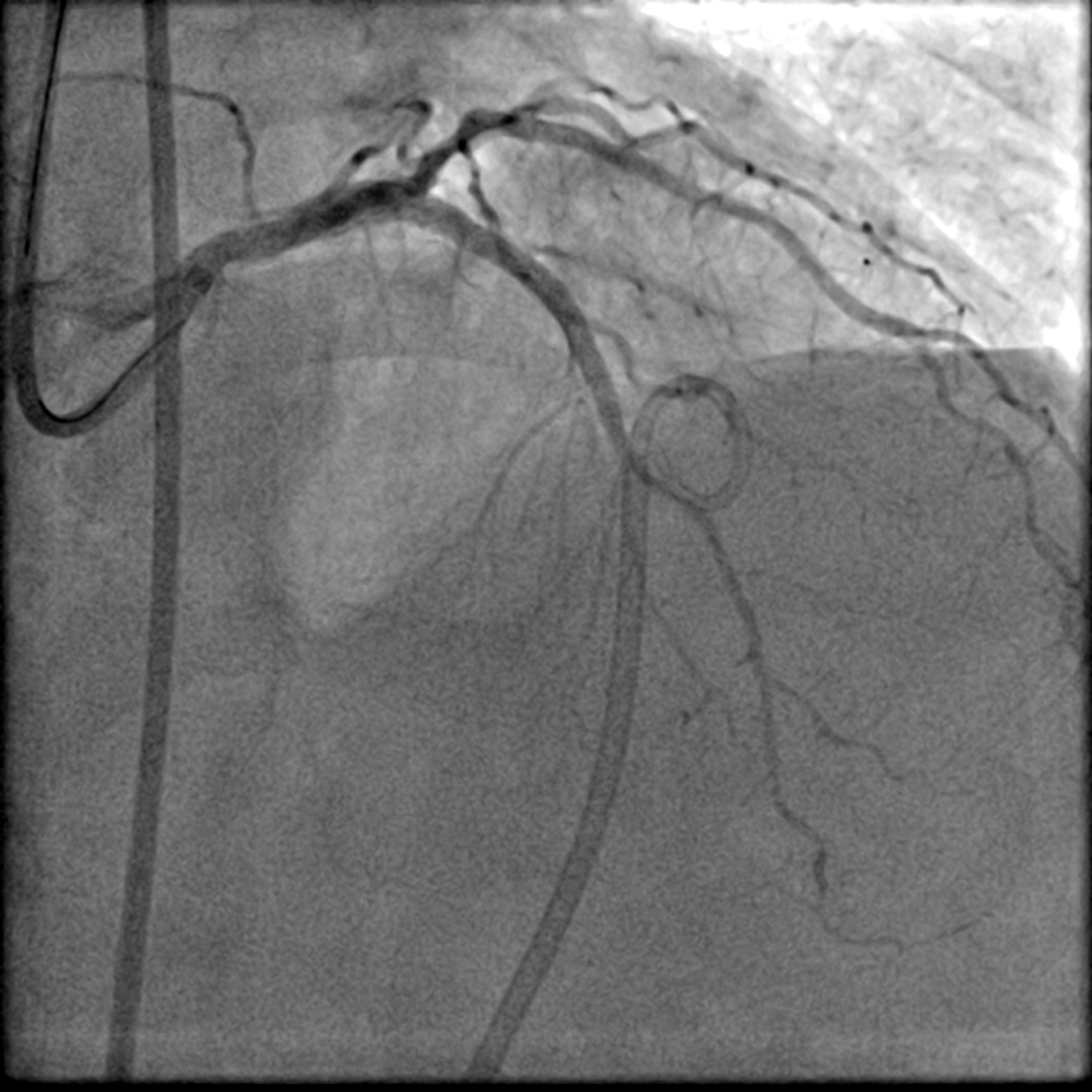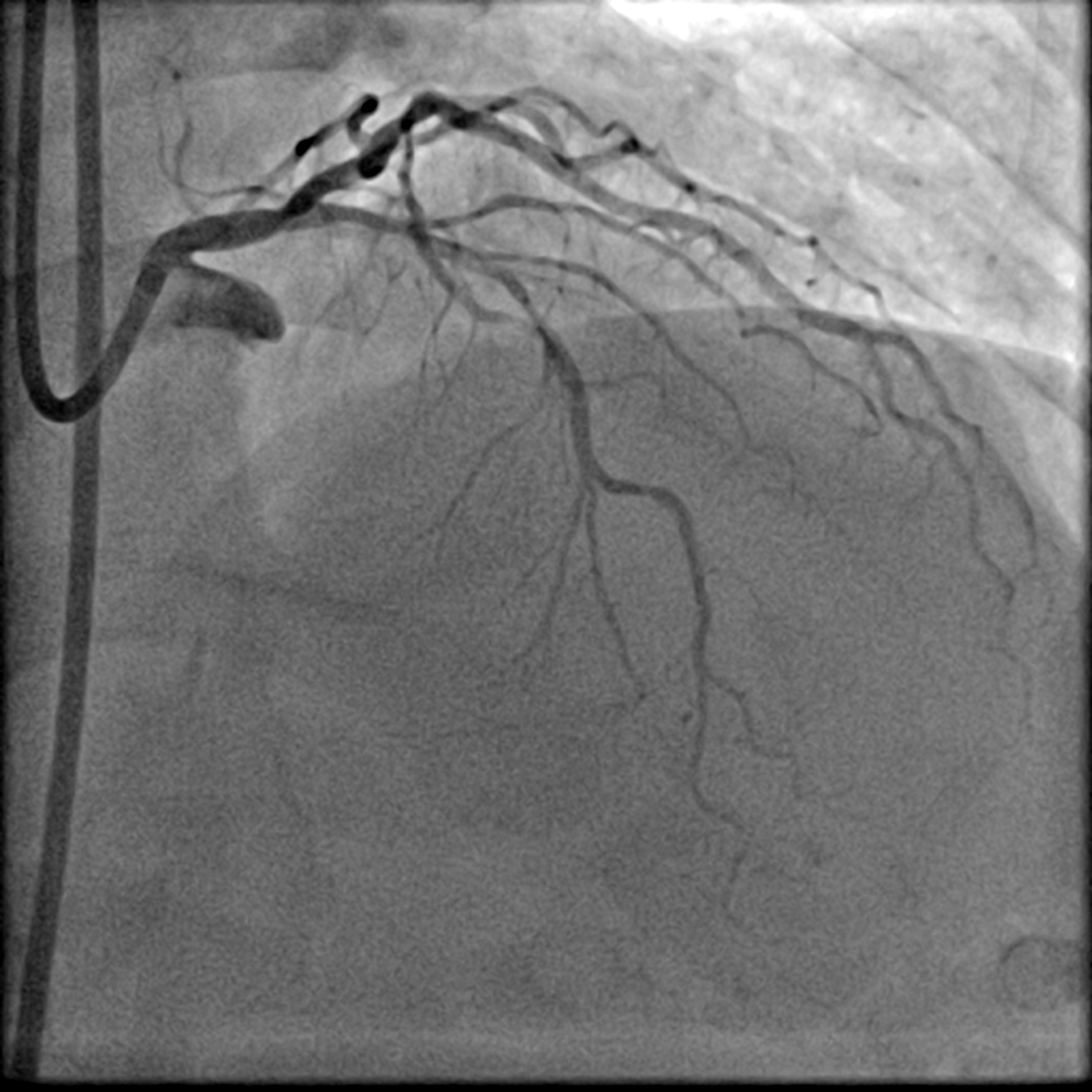 The patient is a 71-year-old female with cardiovascular risk factors including hypertension, insulin-dependent diabetes mellitus, and dyslipidemia. She has been on hemodialysis for 5 years due to End-Stage Renal Disease (ESRD). She developed angina and hypotension during hemodialysis. The angina persisted even after its termination; consequently, she was admitted for a Non-ST Elevation Myocardial Infarction (NSTEMI). Otherwise, she did not report symptoms of heart failure or arrhythmia.