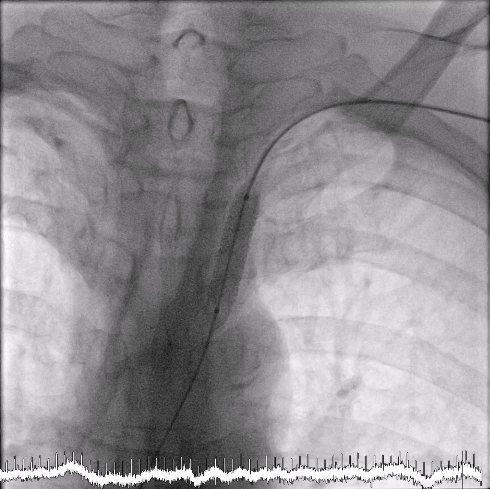 After we performed cine-angiography of the left subclavian artery using AP view, we drew the upper and lower border of the stenosis location with permanent marker on the machine¡¯s screen. We decided not to use a guiding catheter to intervene the left subclavian stenosis. Using JR 4.0 diagnostic catheter, we inserted 0.035¡± PTFE J tip guide wire 150 cm into the left subclavian artery, crossed the lesion, and secured distally into the aorta.We pulled out the JR 4.0 diagnostic catheter, then we delivered a MustangTM Balloon Dilatation Catheter (Boston Scientific) 5.0 x 40 mm into the lesion. We positioned the Mustang balloon according to the ¡®mark¡¯ that we made in the screen, then inflated it.After pre-dilating with the balloon, next we delivered ExpressTM Vascular LD Stent (Boston Scientific) 8.0 x 27 mm into the lesion (according to the ¡®mark¡¯) and deployed the stent. After that, we advanced the balloon stent about 3-4 mm further and post-dilated the stent.The final result was good with no residual stenosis and no dissection.