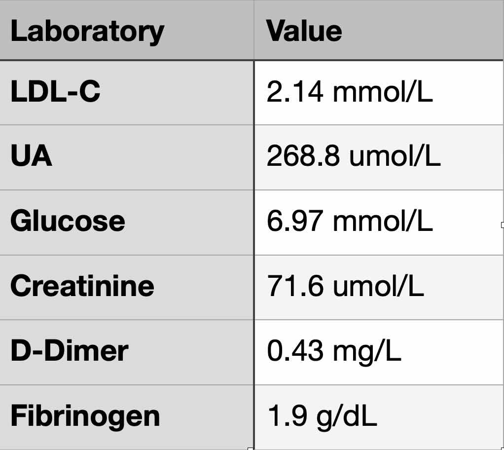 His CT angiography of the abdominal aorta and lower extremity arteries showed atherosclerosis of the abdominal aorta and no contrast enhancement distal of the left renal artery and in the mid-distal common iliac arteries, suggesting occlusion. There were multiple tortuous and widened collateral vessels in the abdominal wall and pelvis.His complete blood count was within the normal limit; the others are shown in the table.