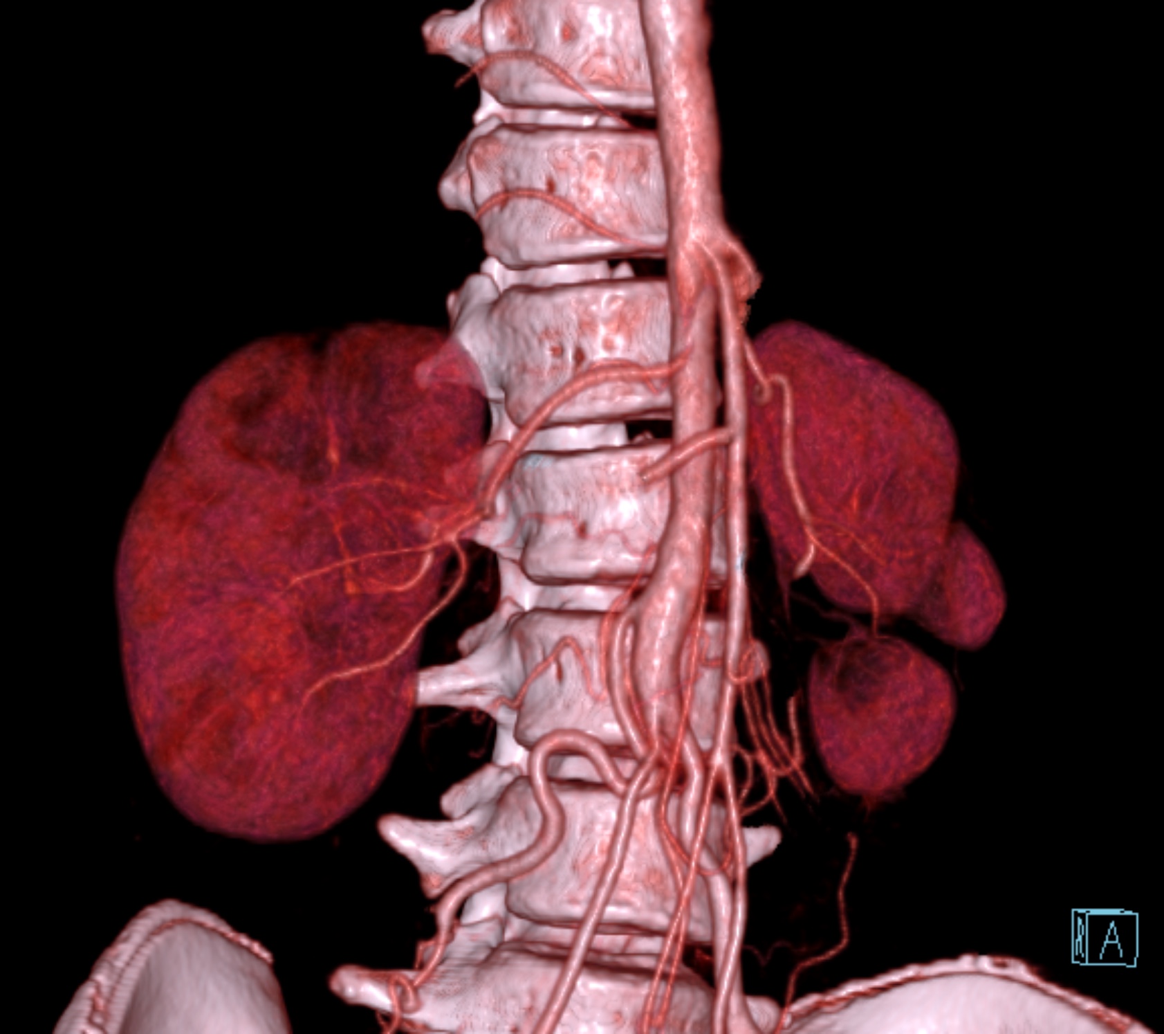We have presented case of uncontrolled hypertension in 14 year old boy due to right renal artery stenosis. The renal endovascular intervention was performed using two dimensional three dimensional fusion imaging technique. Despite the high and tight origin of the right renal artery, the procedure was completed successfully. In 1.5 months follow up, the blood pressure was easily controlled and the medication could be deescalated. Two dimensional three dimensional fusion imaging is one technique needed when compared with three dimensional three dimensional fusion imaging to reduce the radiation dose, contrast usage, especially in difficult procedural scenario like stated in this case.