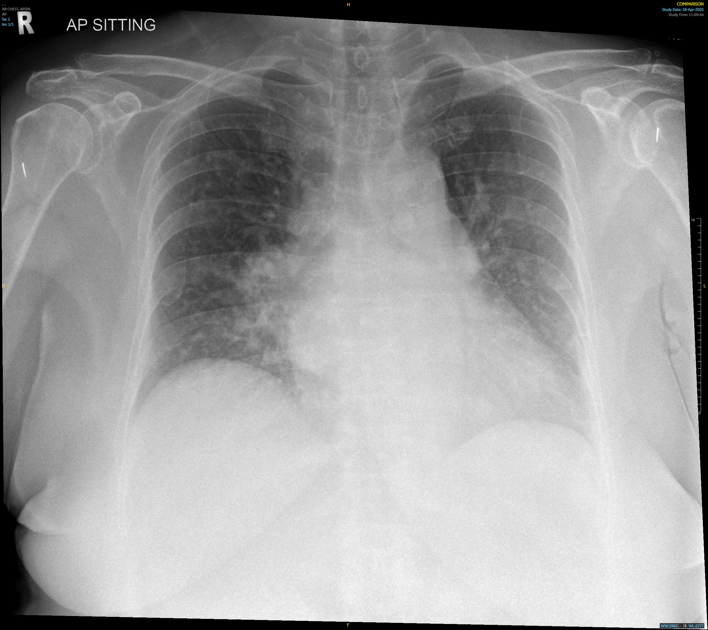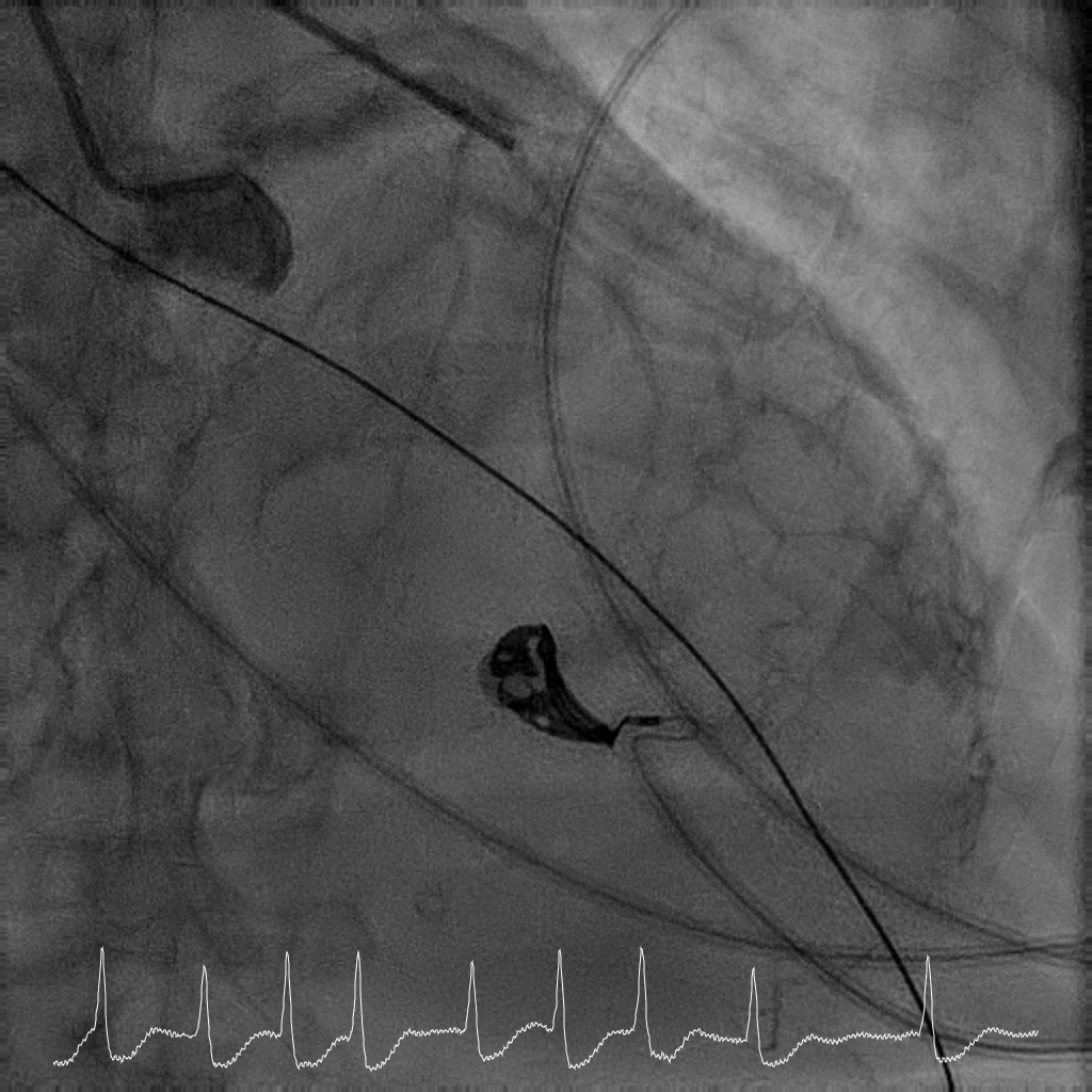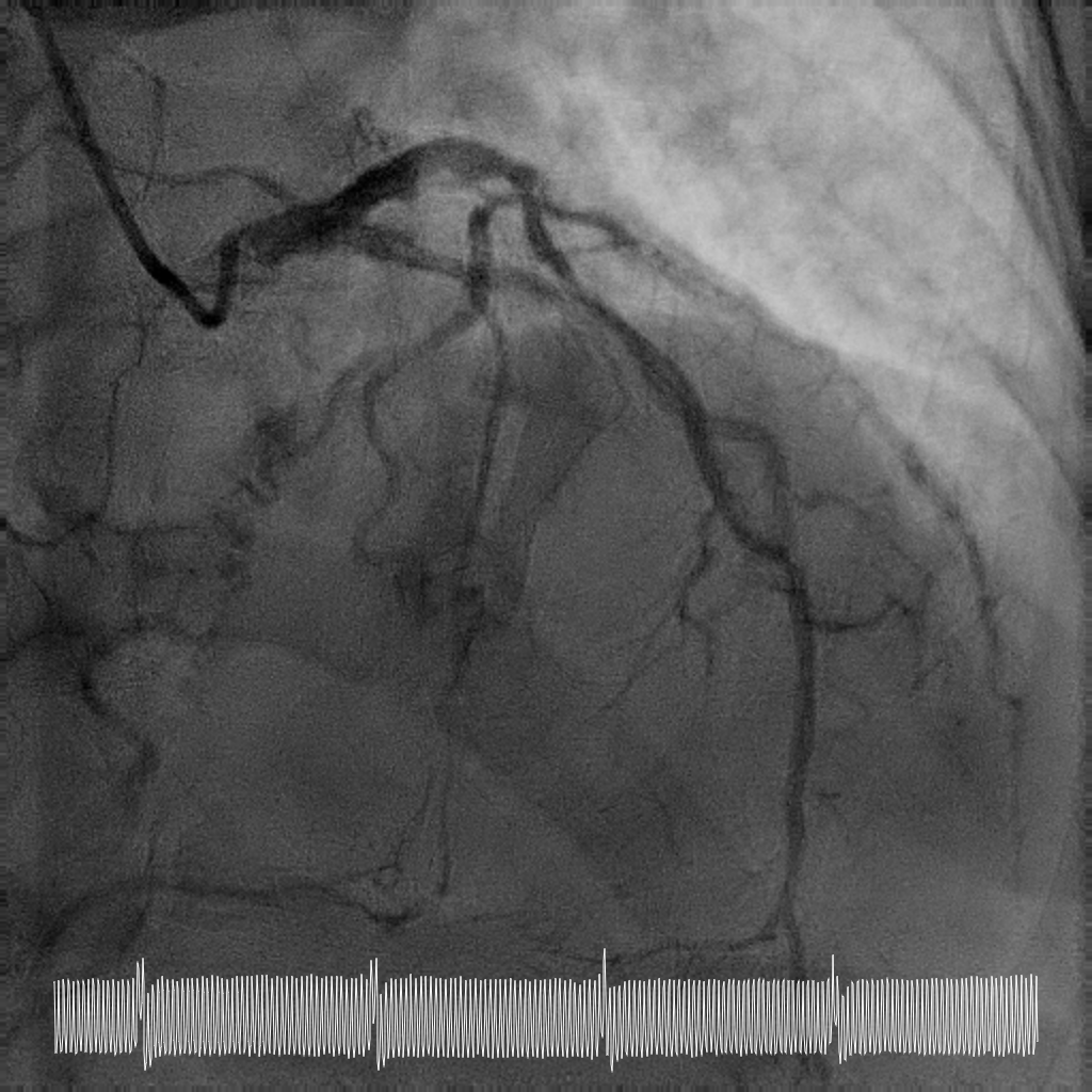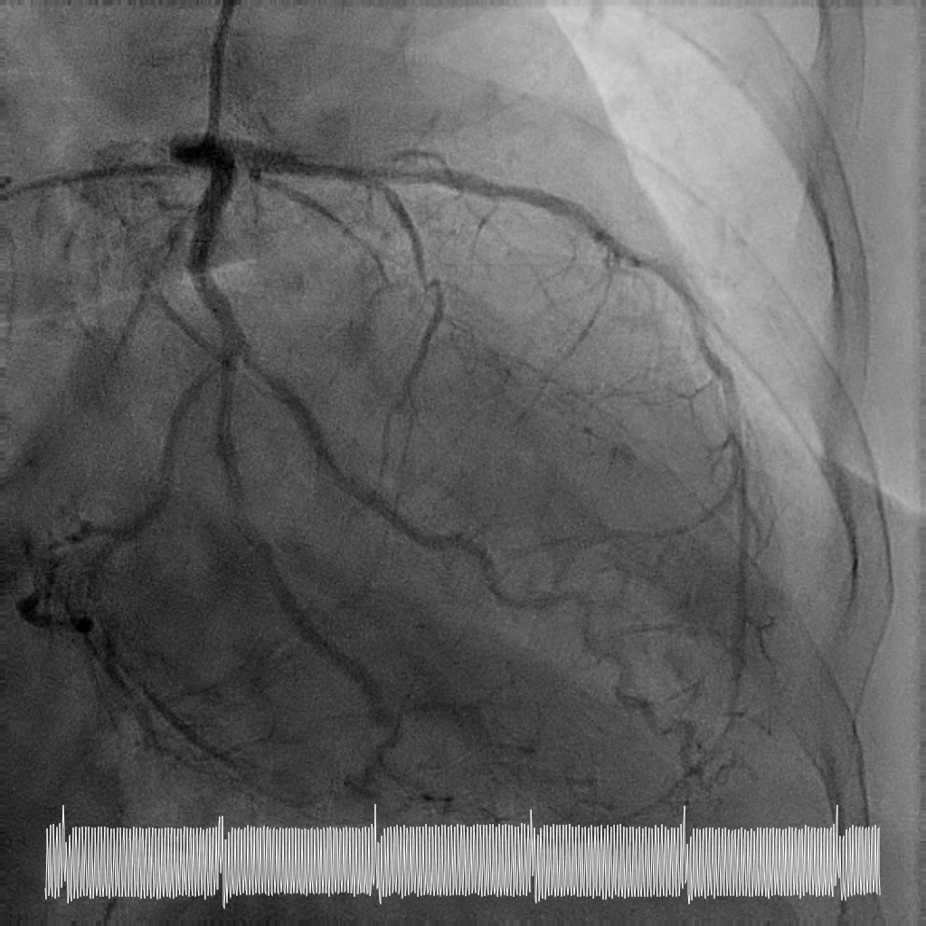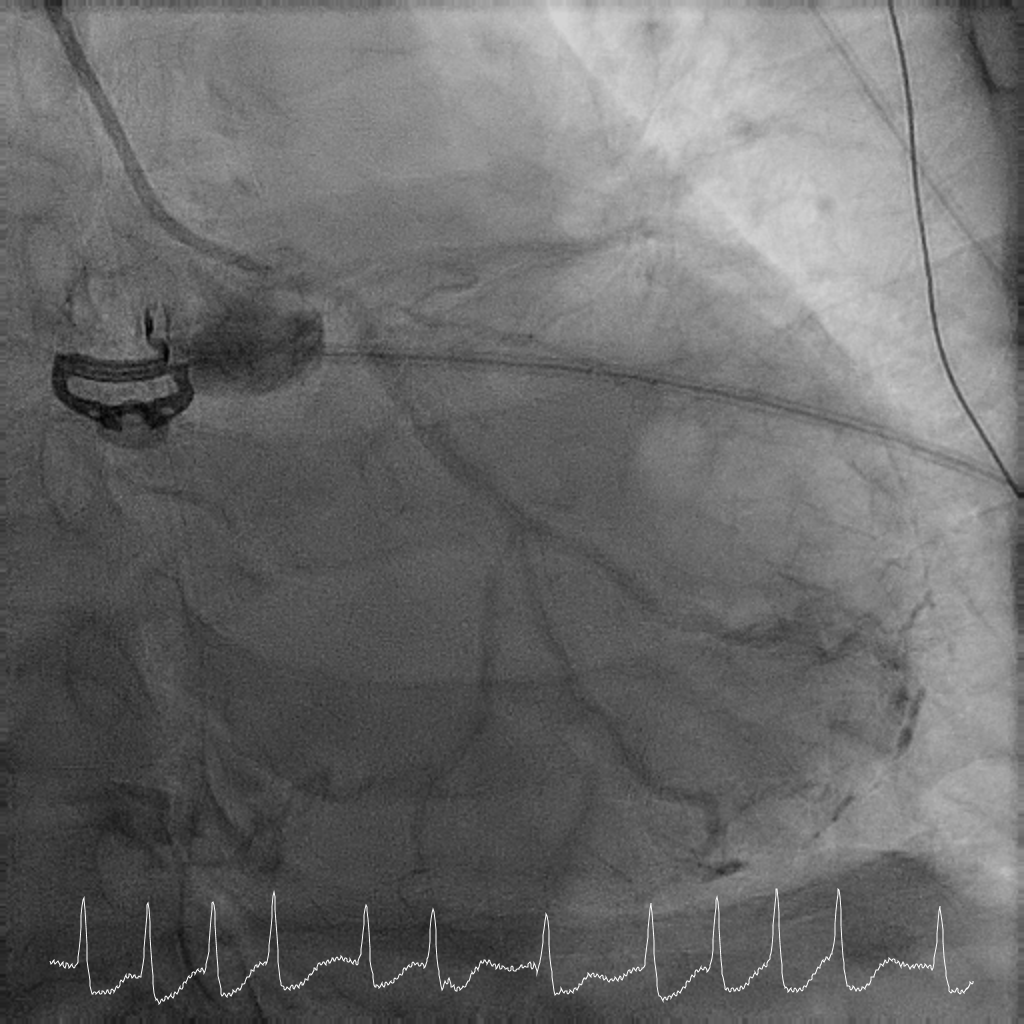 A 71-year-old female presented to theemergency department overnight with shortness of breath. High sensitivityTroponin T was elevated at 3415ng/L. She rapidly developed worsening hypoxiarequiring intubation, and clinical picture was consistent with worseningcardiogenic shock and acute pulmonary oedema. Due to her rapidly deterioratingcondition, she was taken to the cardiac catheterisation lab early forconsideration of upfront revascularisation and mechanical circulatory support.