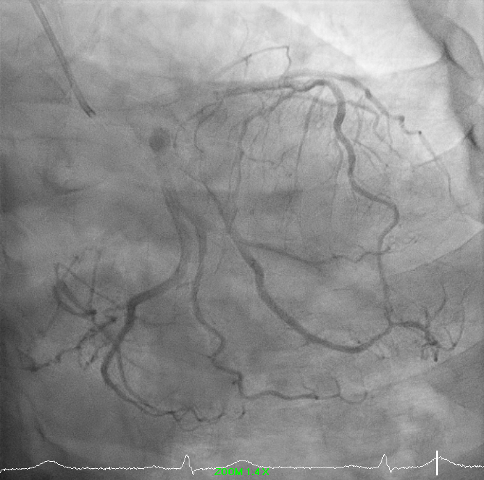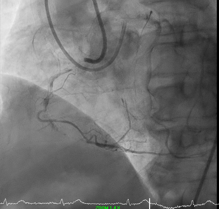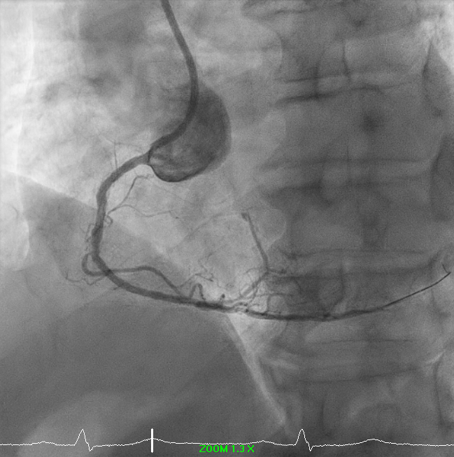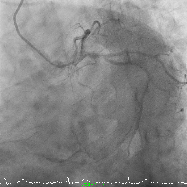 A 68-year-old man with hypertension, dyslipidemia, prior RCA DES (2017) and ischemic cardiomyopathy presented with progressive exertional angina. He reported no rest pain or decompensated heart failure symptoms. On examination, he was haemodynamically stable with clear lung fields, normal heart sounds, and no peripheral oedema or clinical evidence of congestion.