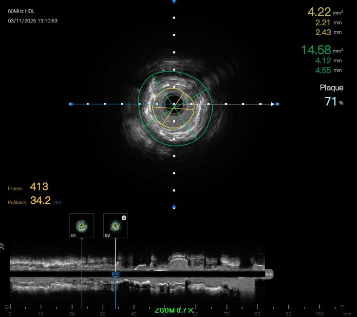 Learning points: 1. IVUS-guided DCB-only PCI is safe and effective with adequate lesion preparation. 2. ¡®Leave-nothing-behind¡¯ minimizes risks from multiple stent layers. 3. IVUS ensures precise assessment, optimized treatment, and durable outcomes.